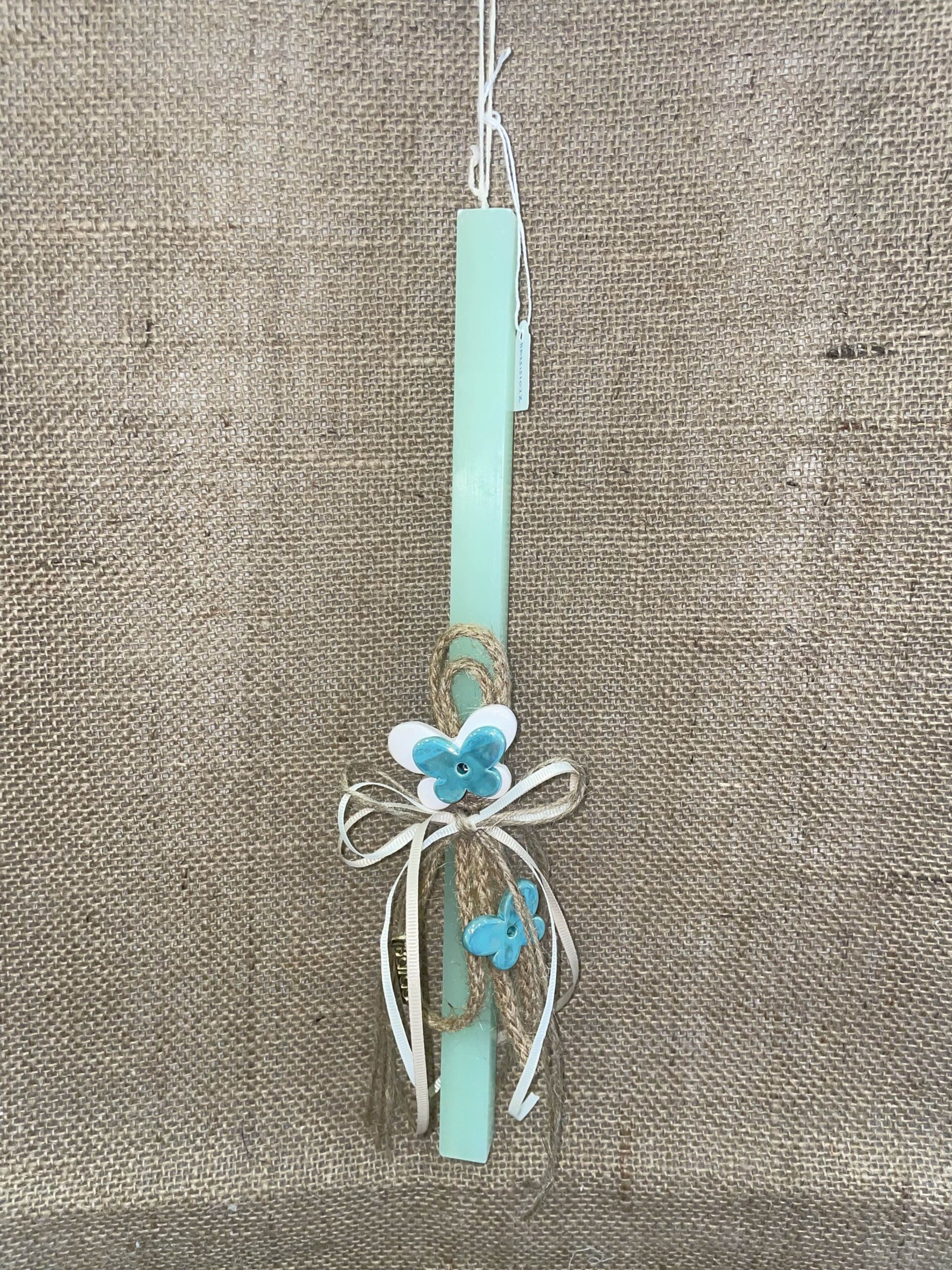 Μέντα τετράγωνη λαμπάδα με κεραμικές πεταλουδίτσες και σχοινί