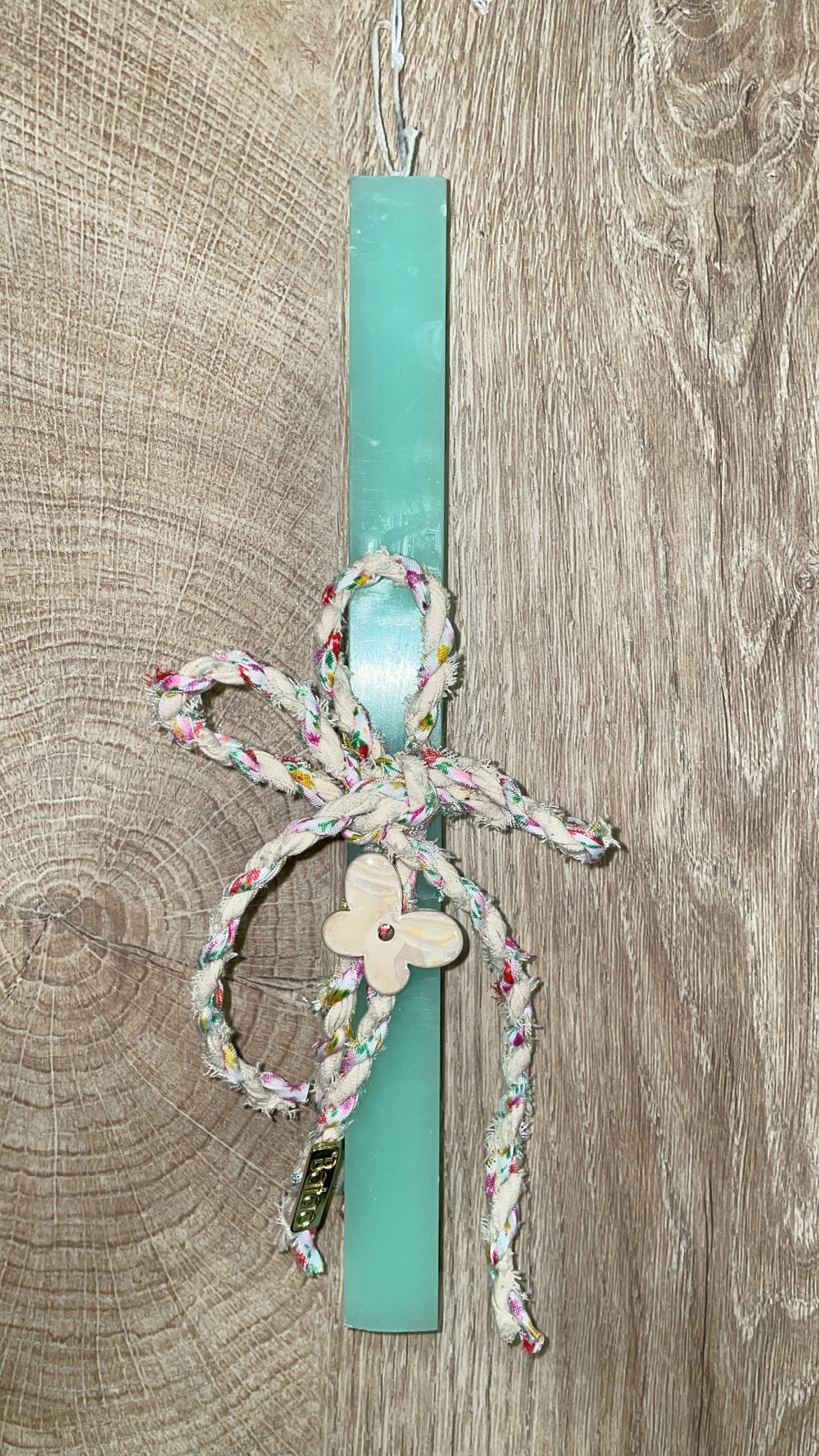 Μέντα τετράγωνη λαμπάδα με πολύχρωμο κορδόνι και πεταλουδίτσα