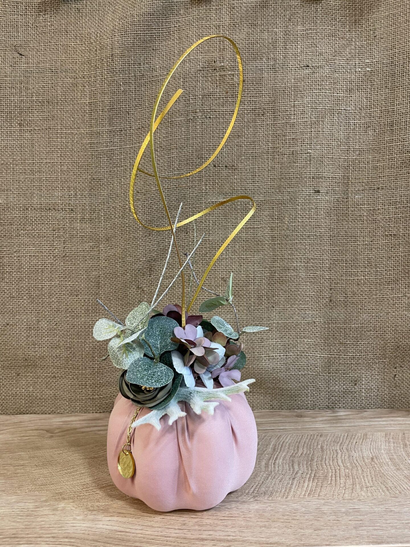 Ετικέτα: Μεσαία κολοκύθα ροζ με μεταλλικό στολισμό και λουλούδια