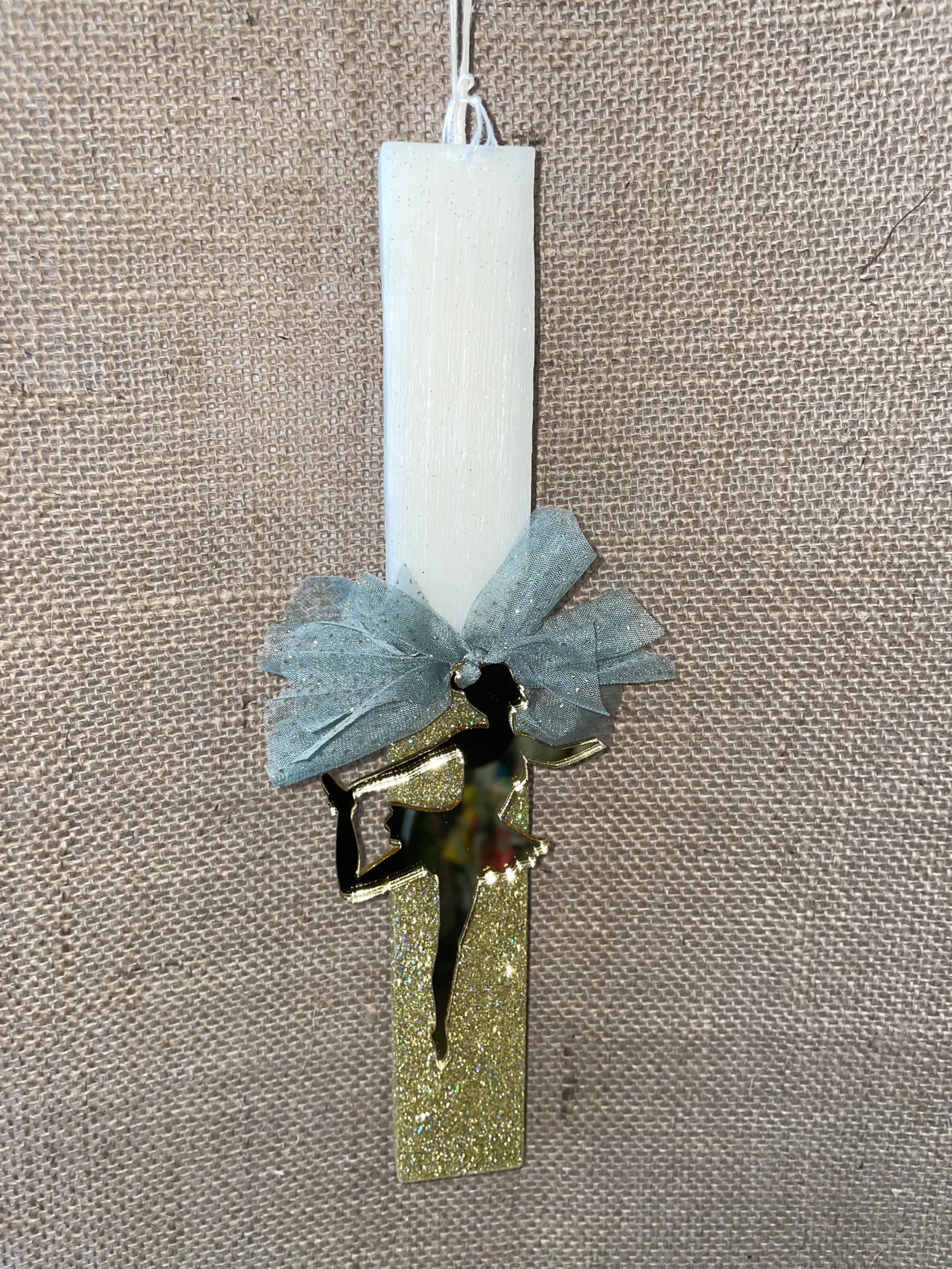 Μπεζ πλακέ αρωματική λαμπάδα, μισή ιριζέ, με plexiglass καθρέφτη μπαλαρίνα