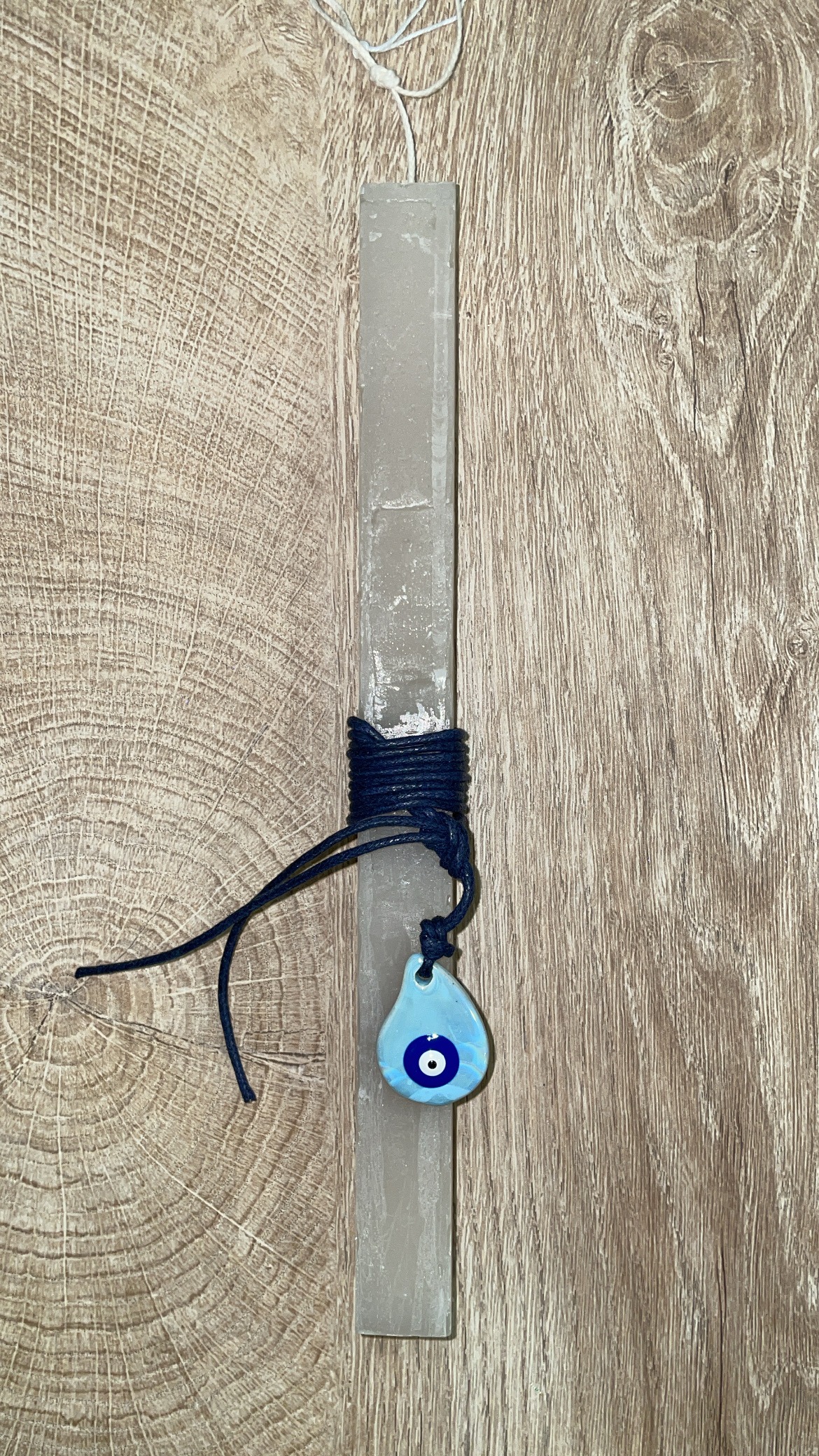 Μπεζ τετράγωνη λαμπάδα με κρεμαστό μάτι για τον λαιμό
