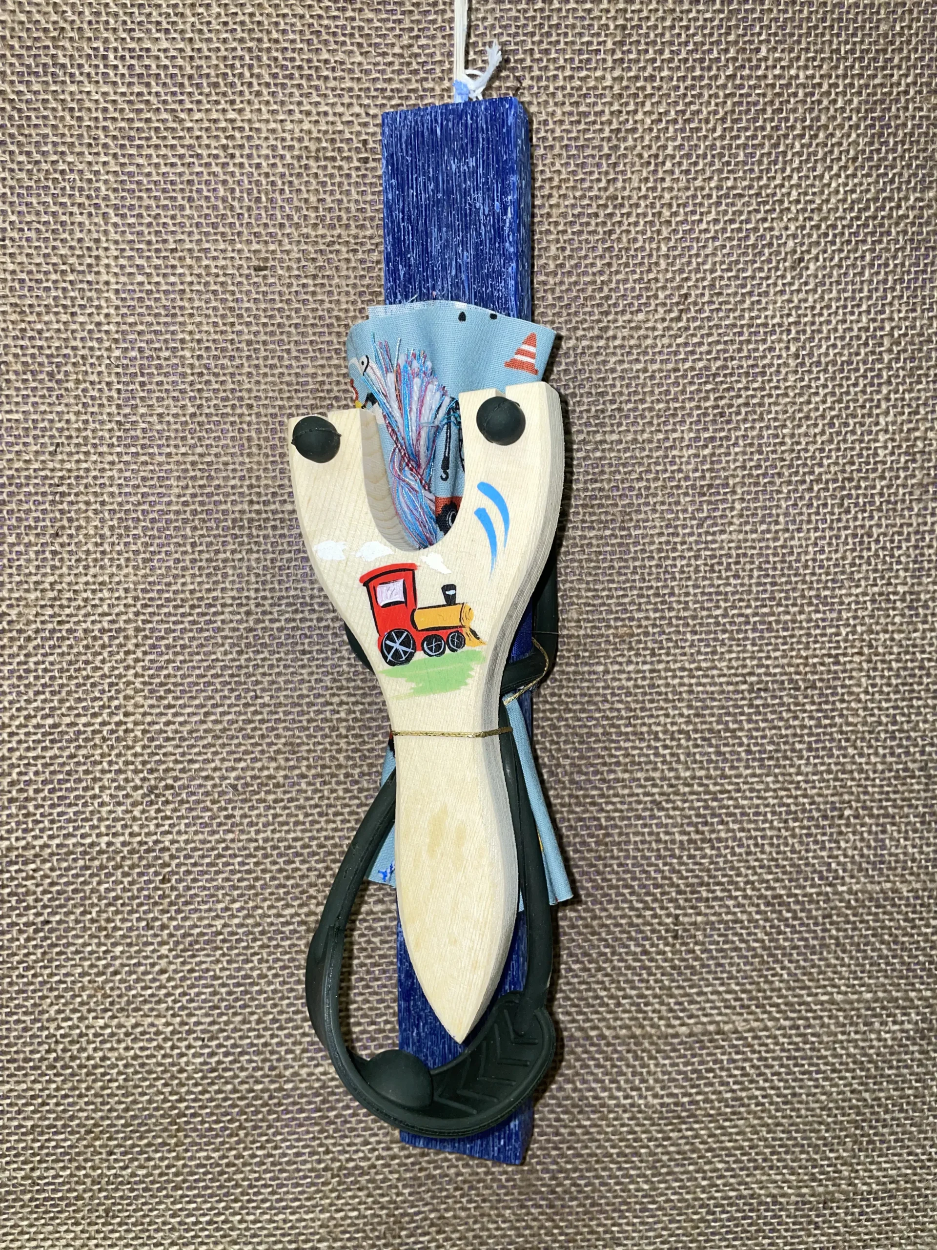 Ετικέτα: Μπλε πλακέ αρωματική λαμπάδα με ξύλινη σφεντόνα και τρένο