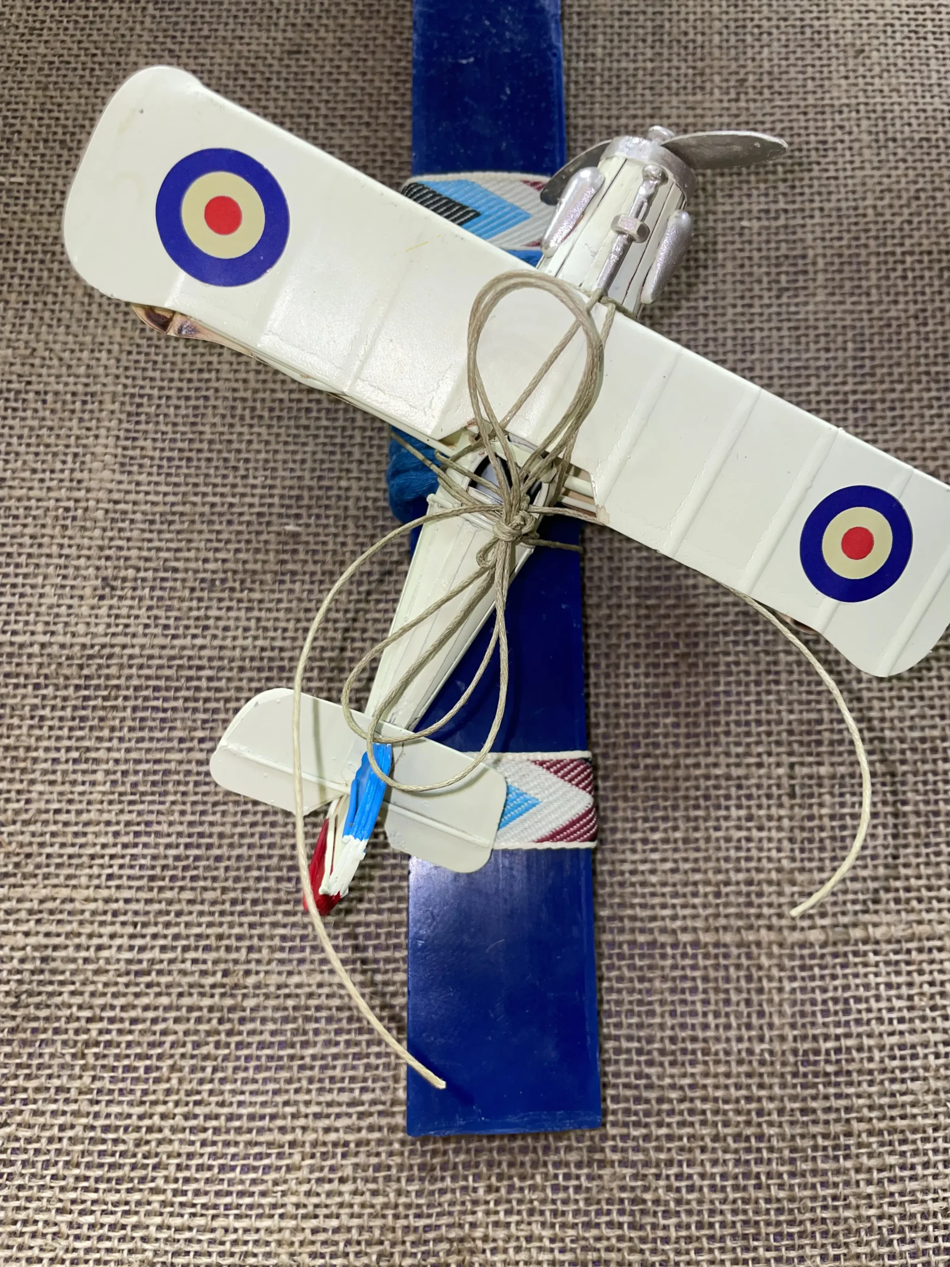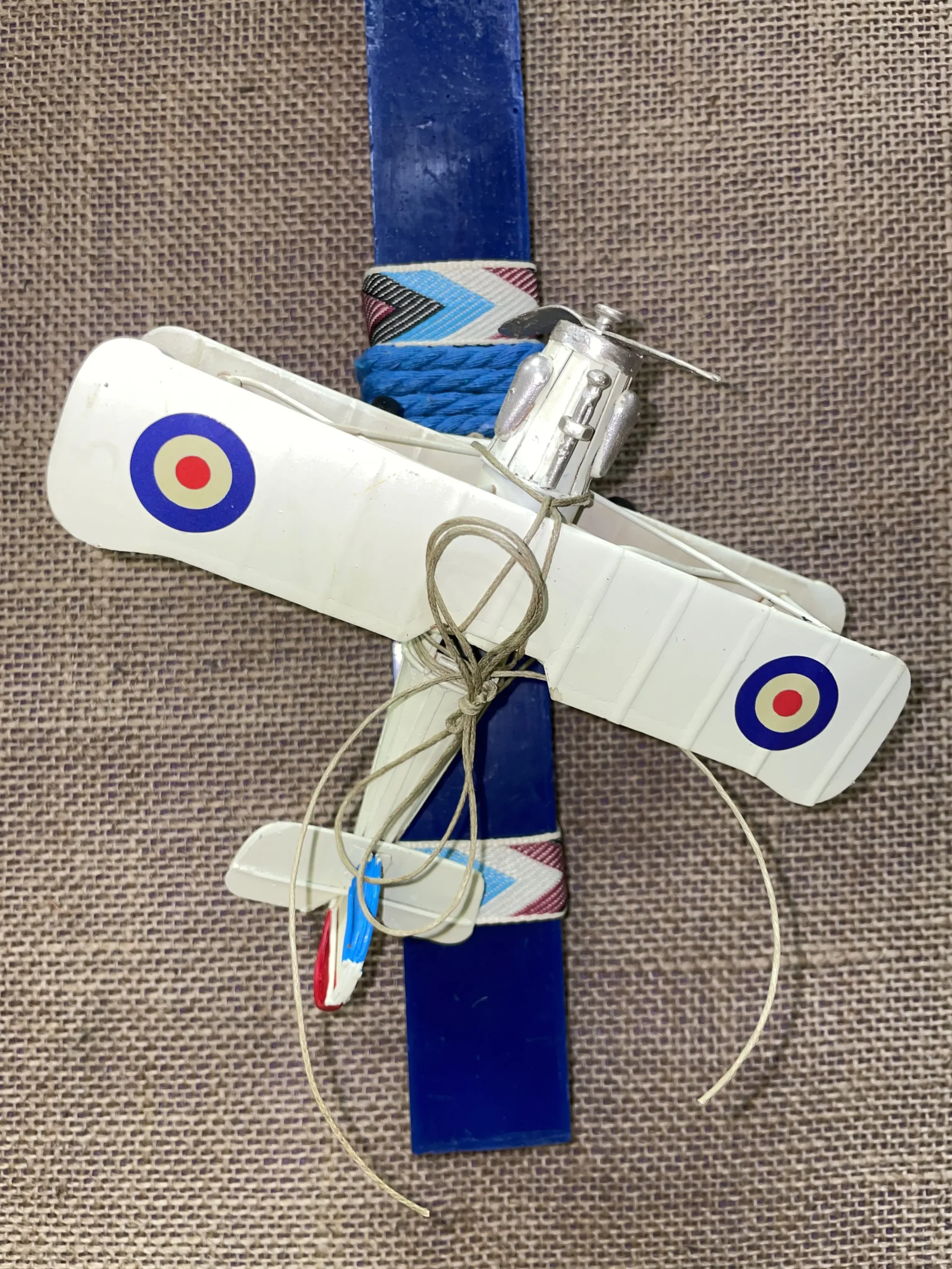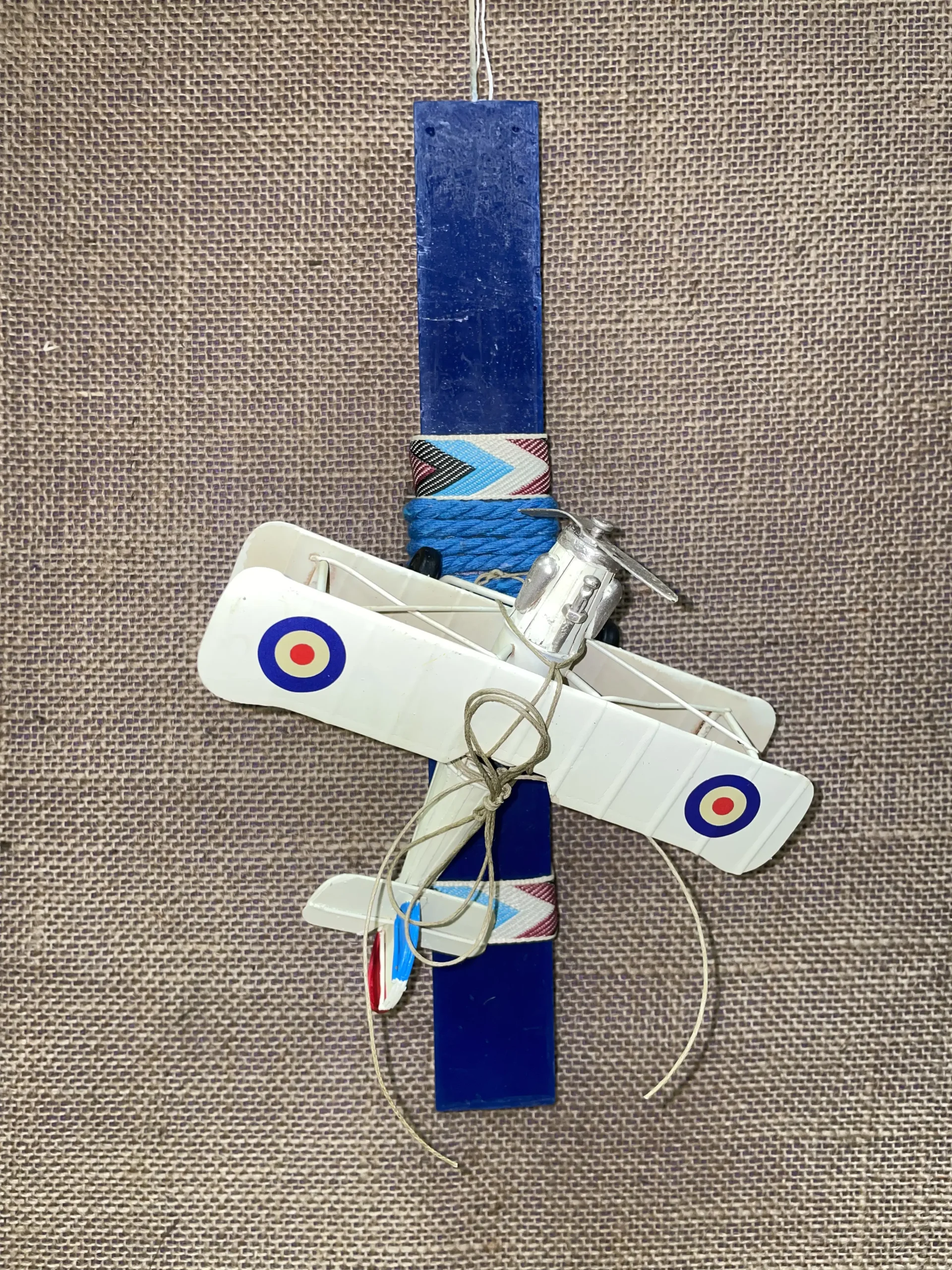 Ετικέτα: Μπλε πλακέ λαμπάδα με vintage αεροπλάνο μπεζ