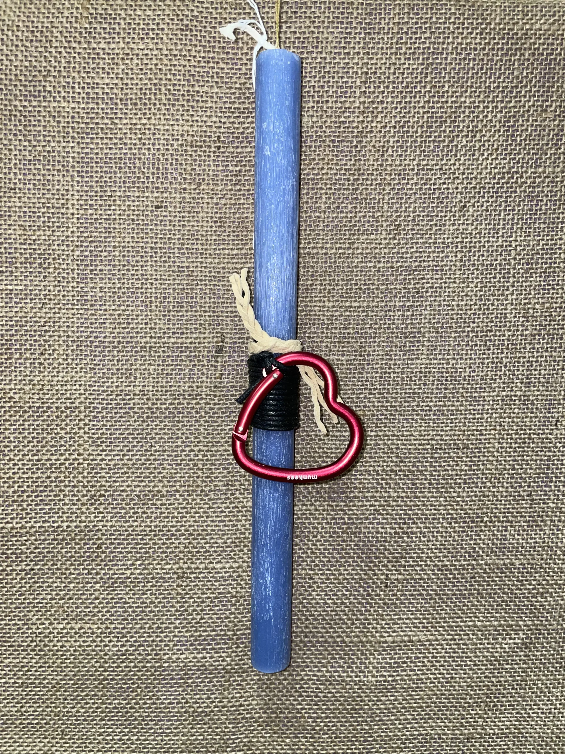 Ετικέτα: Μπλε στρογγυλή αρωματική λαμπάδα με μπρελόκ καρδιά