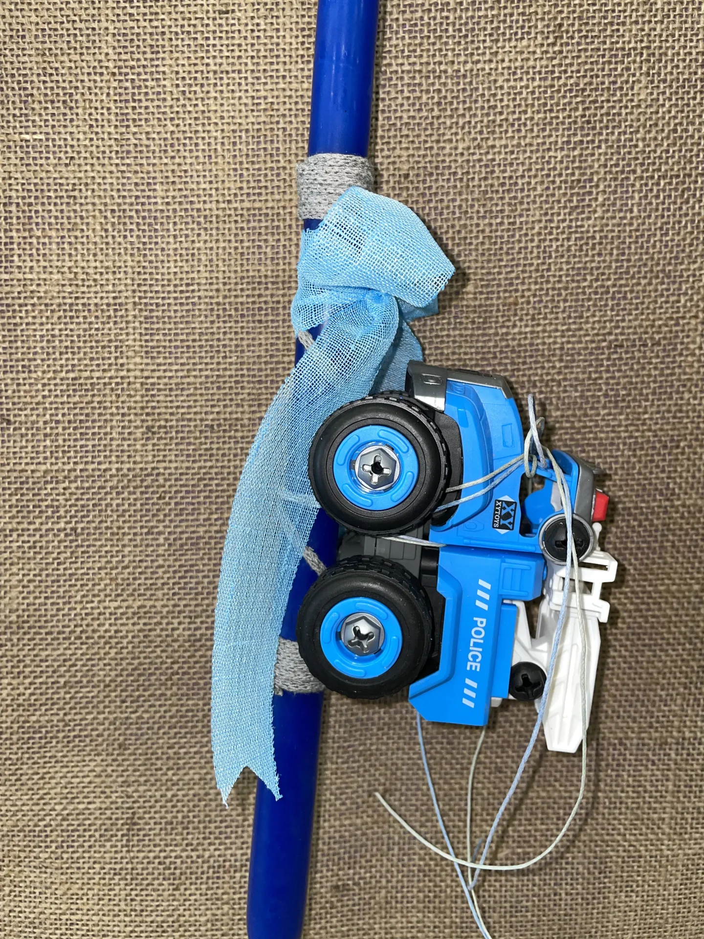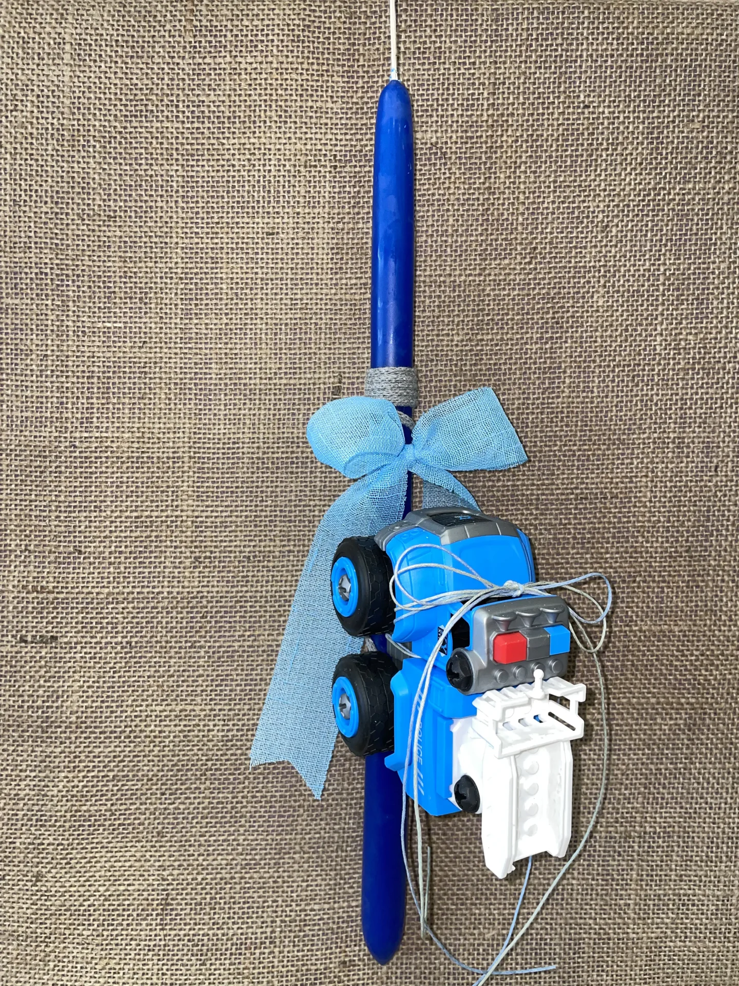 Ετικέτα: Μπλε στρογγυλή αρωματική λαμπάδα με παιχνίδι φορτηγό της αστυνομίας