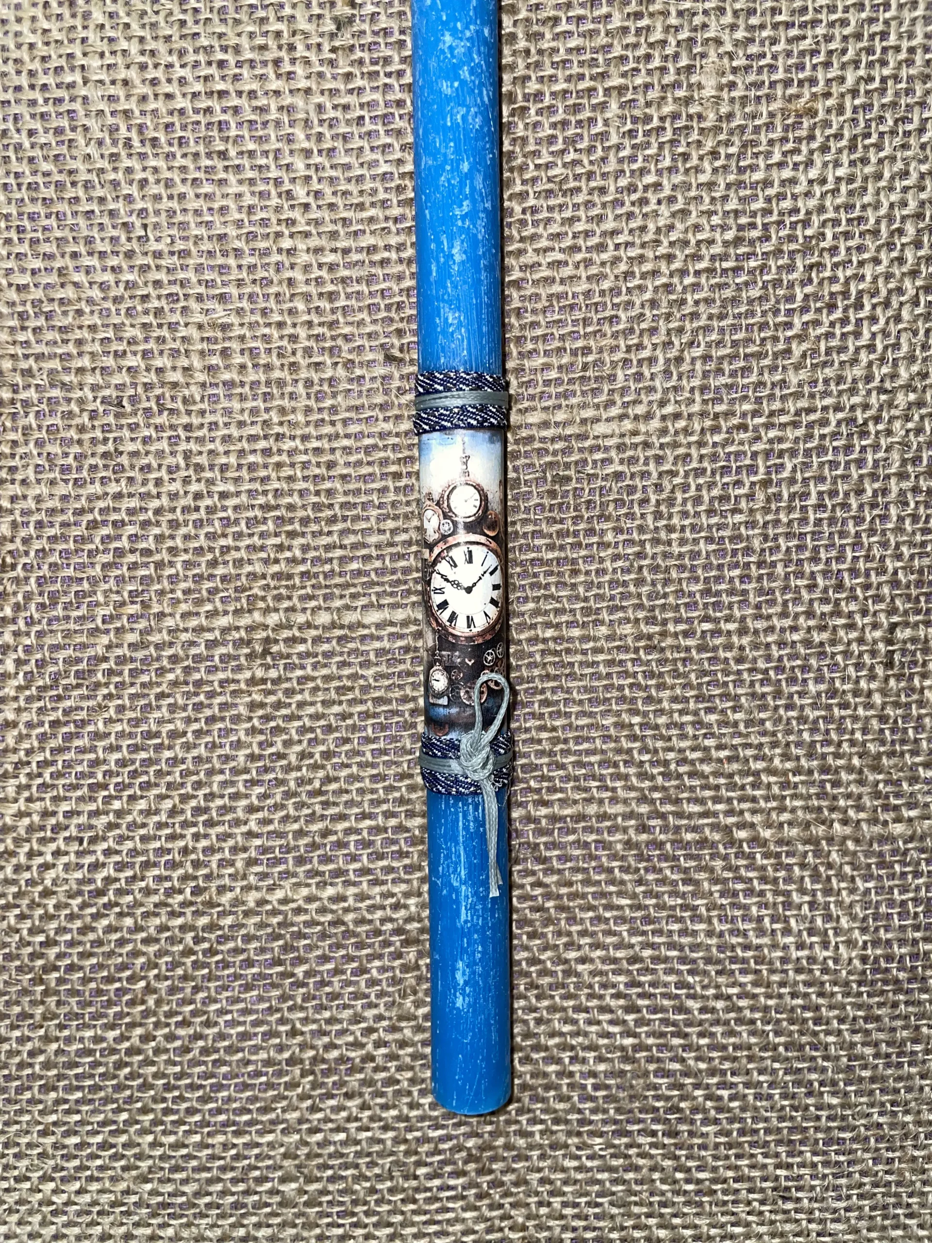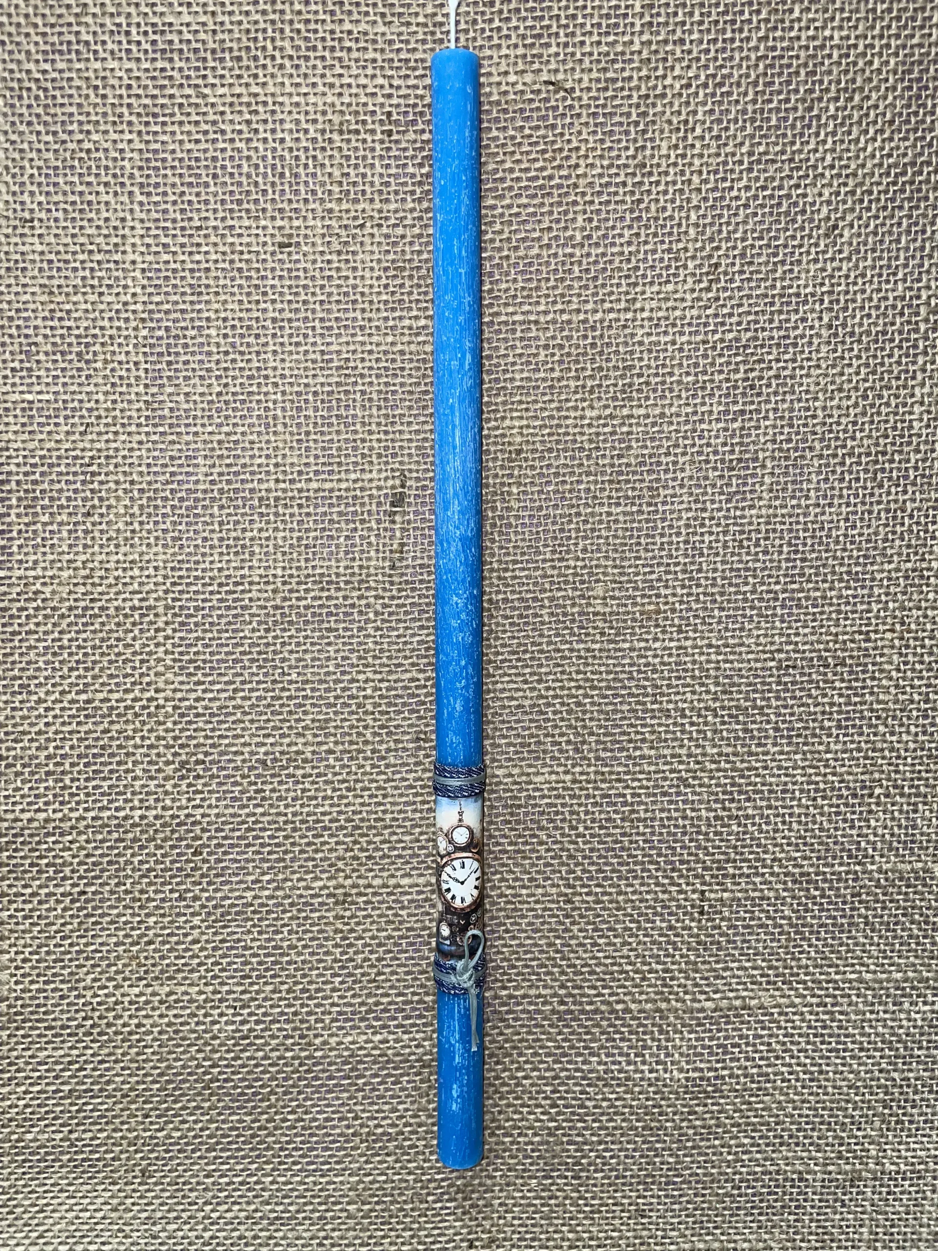 Μπλε στρογγυλό λαμπαδάκι με ρολόϊ