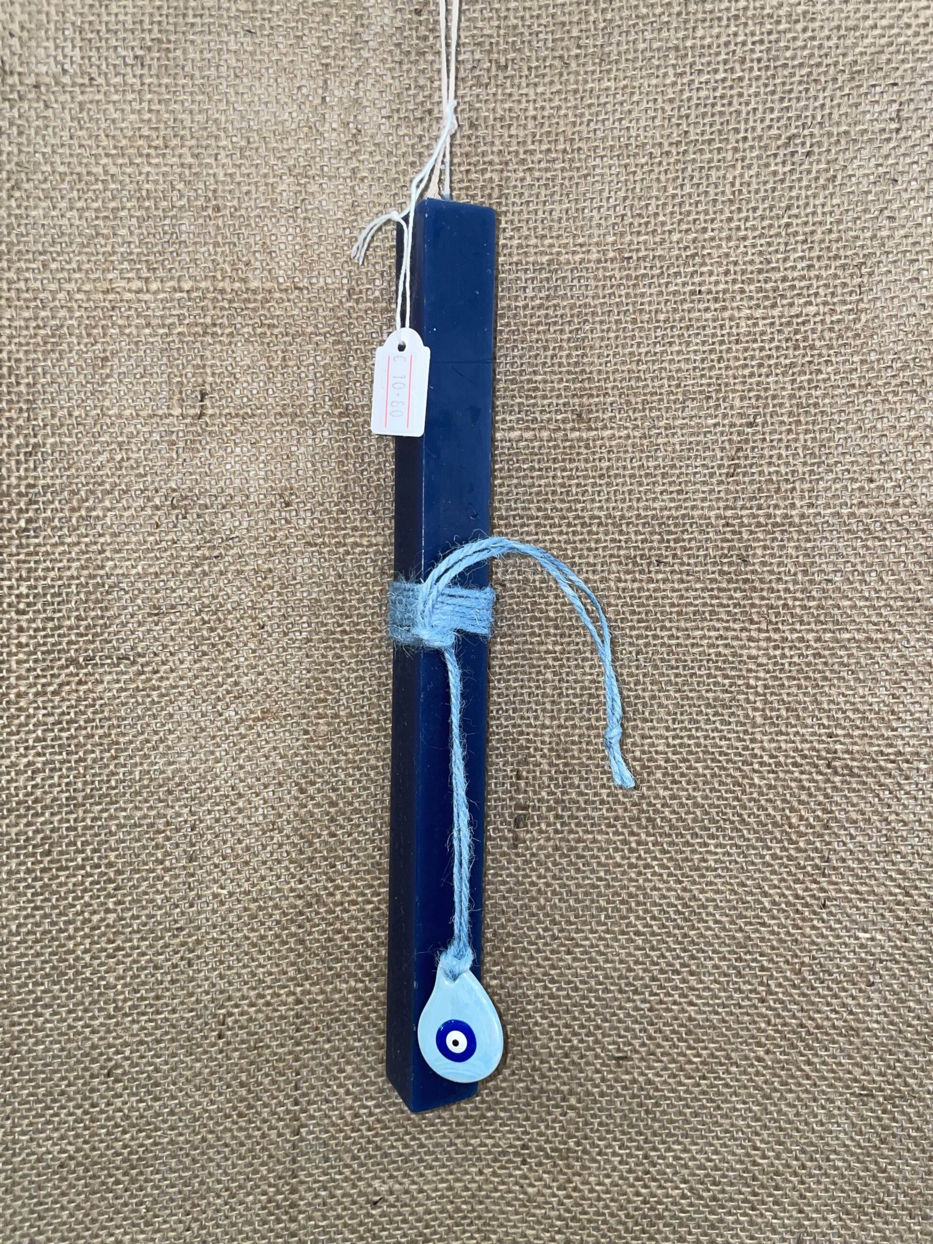 Ετικέτα: Μπλε τετράγωνη λαμπάδα με κεραμικό ματάκι γαλάζιο