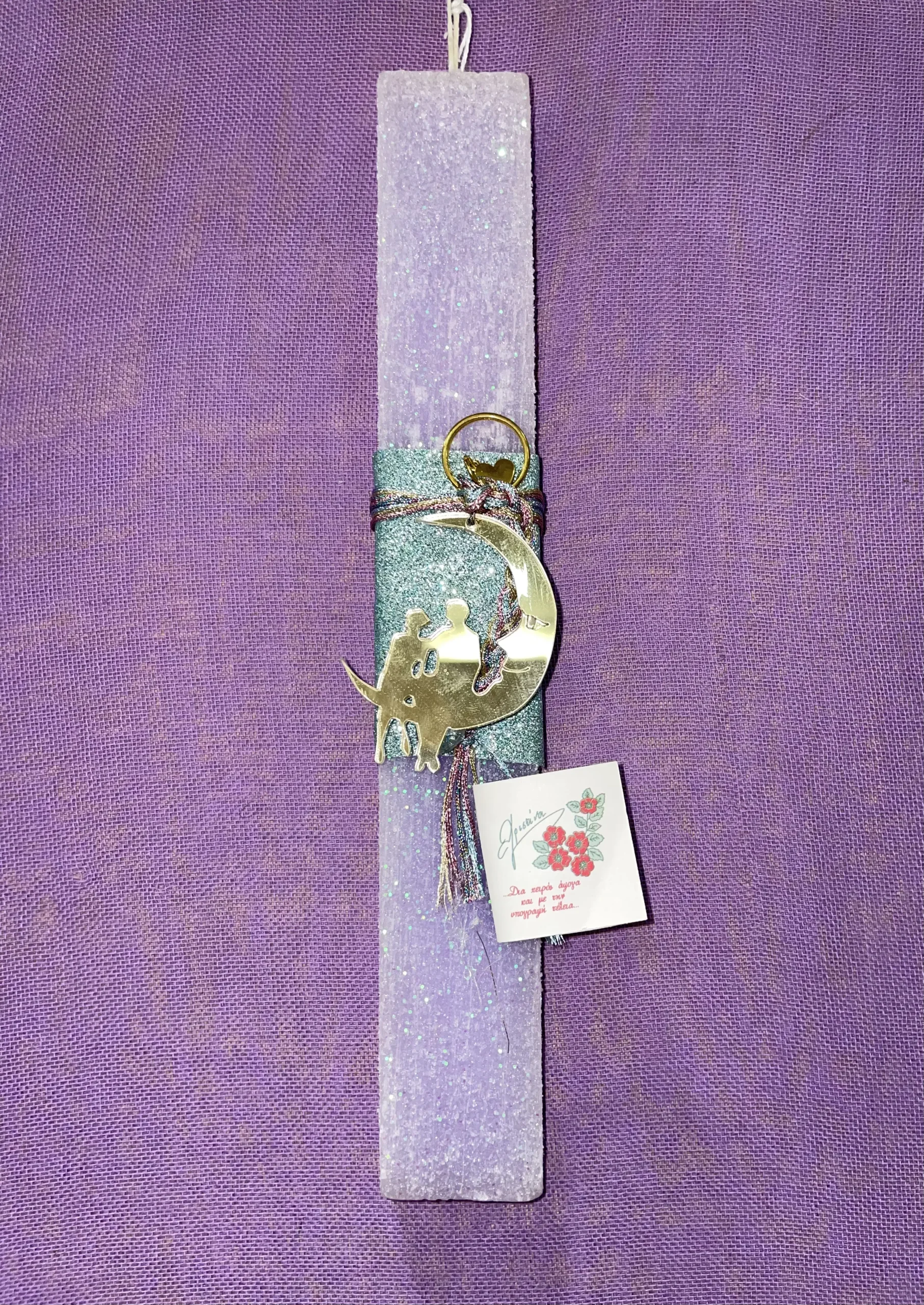 Αρχική σελίδα ΕΠΟΧΙΑΚΑ ΕΙΔΗ ΠΑΣΧΑΛΙΝΑ ΕΙΔΗ ΠΑΣΧΑΛΙΝΕΣ ΛΑΜΠΑΔΕΣ ΓΙΑ ΚΟΡΙΤΣΙΑ Μωβ πλακέ ιριζέ λαμπάδα με χρυσό ζευγάρι από plexiglass