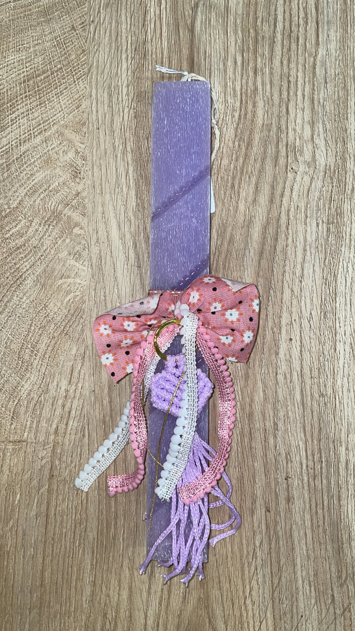 Tag: Μωβ πλακέ λαμπάδα με μωβ μακραμέ μπρελόκ