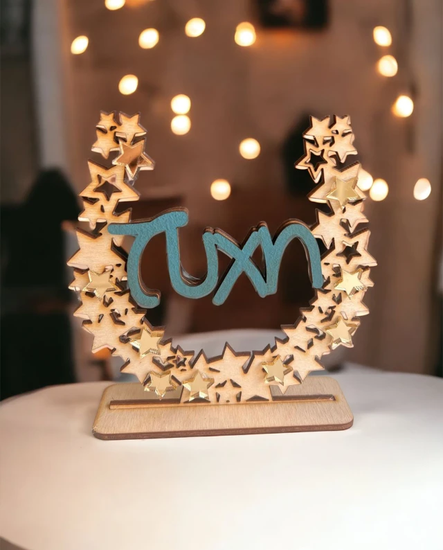 Ξύλινο γούρι με αστέρια πλεξιγκλάς ”Τύχη”