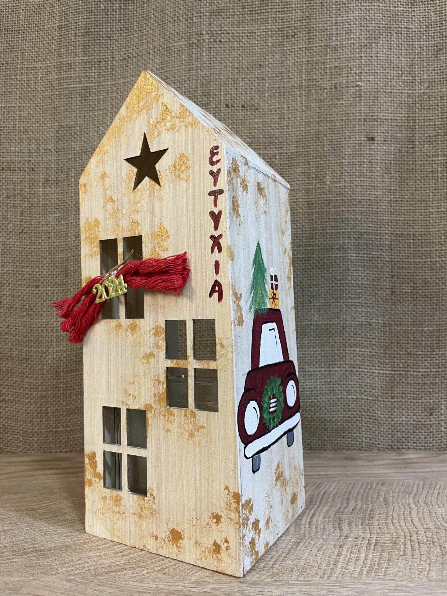 Ξύλινο σπιτάκι με βάση για ρεσώ-Ευτυχία