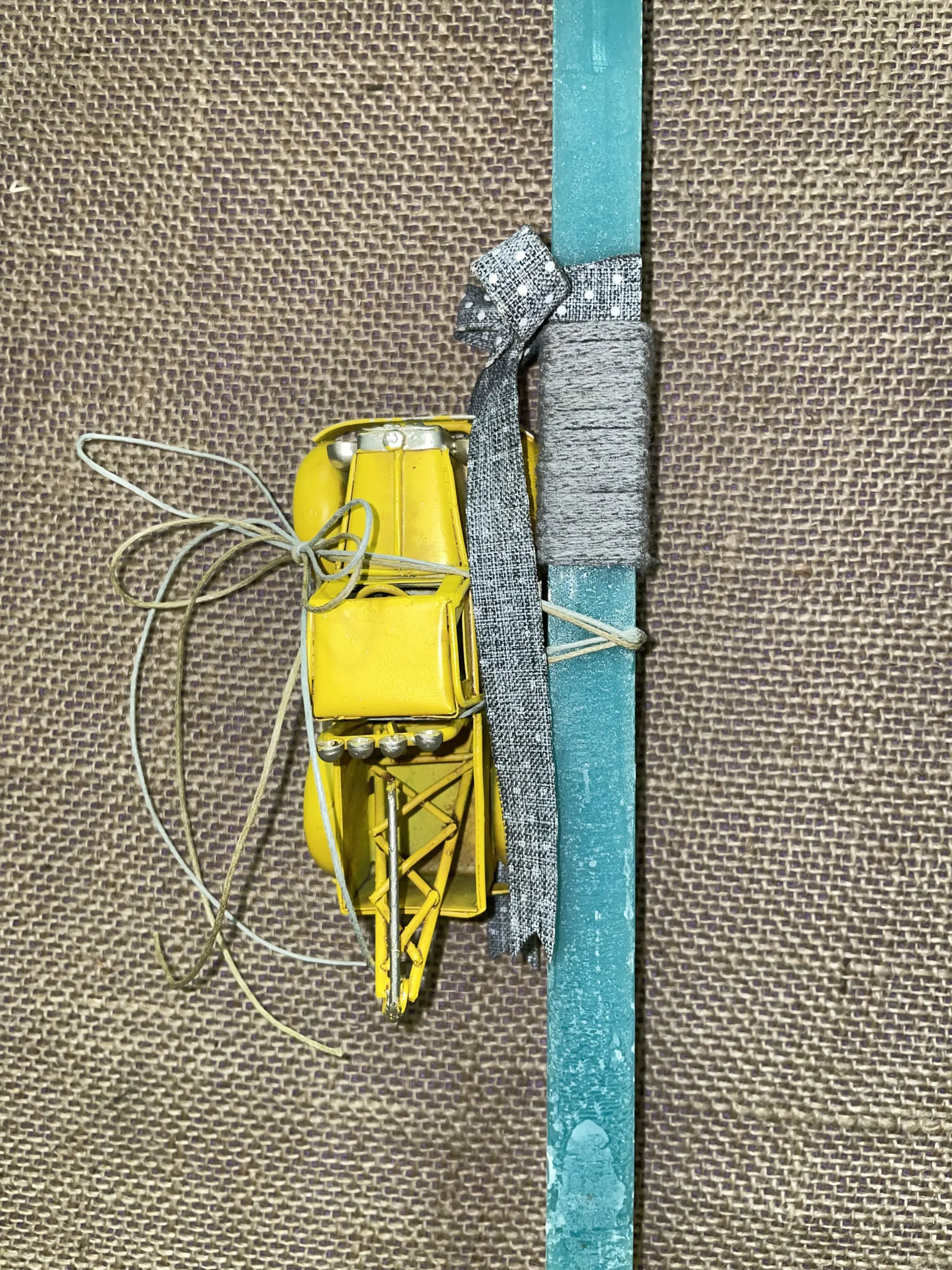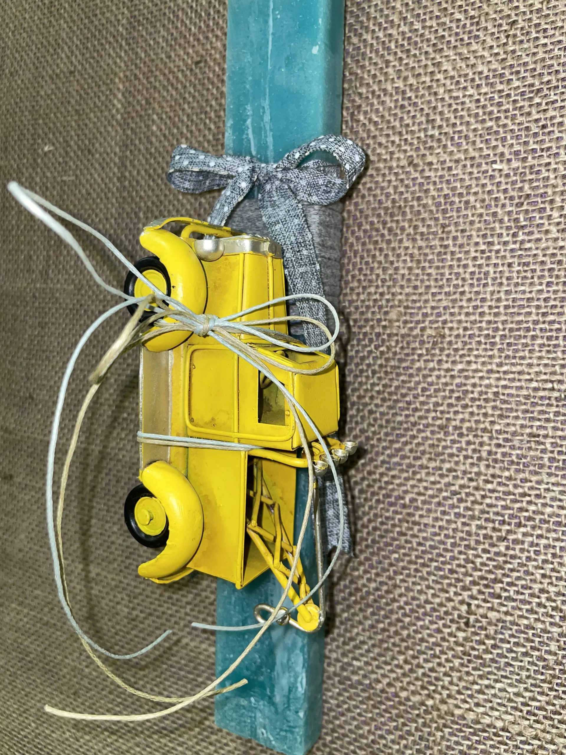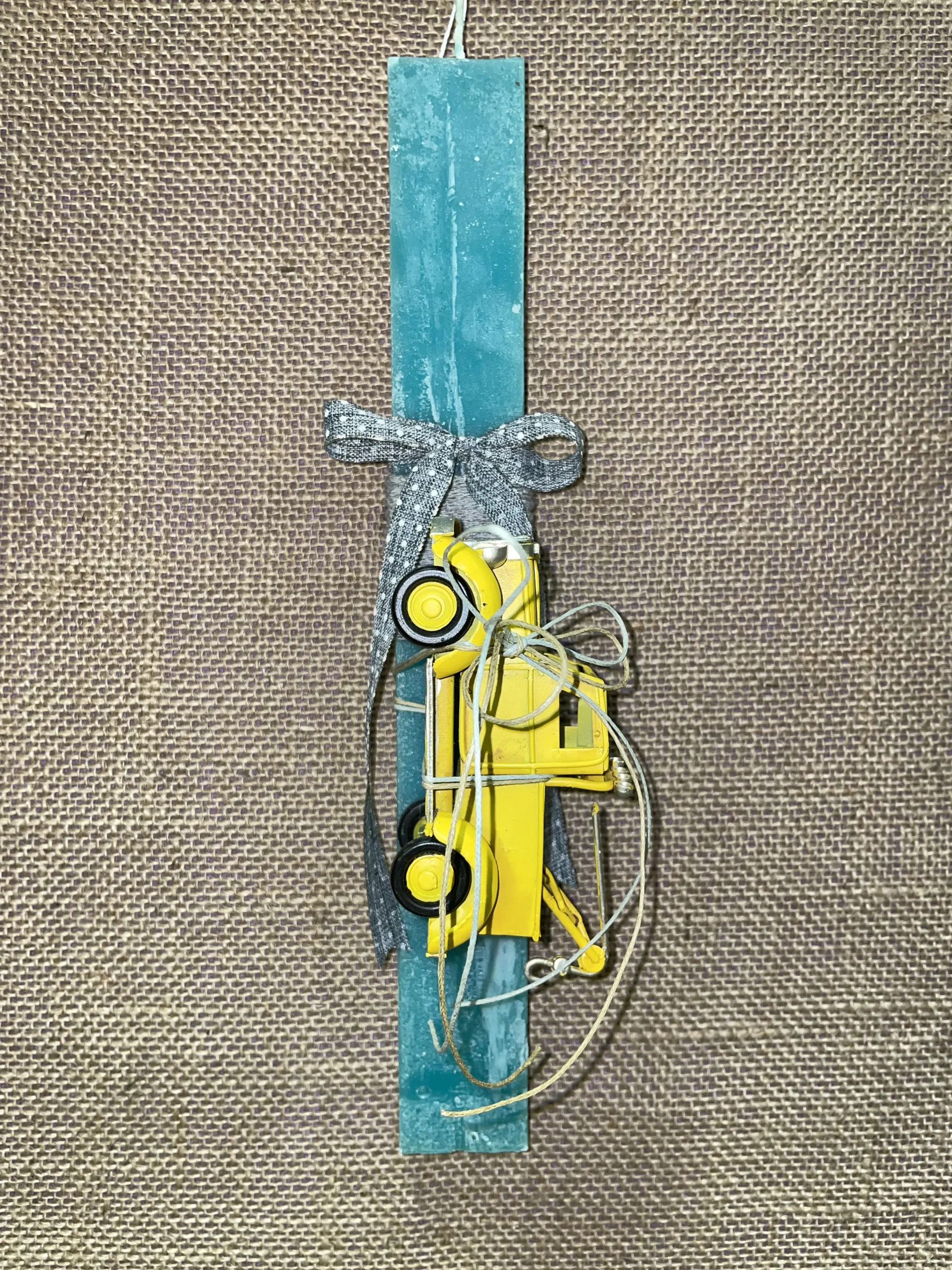 Πετρόλ πλακέ λαμπάδα με κίτρινο vintage φορτηγό/γερανό