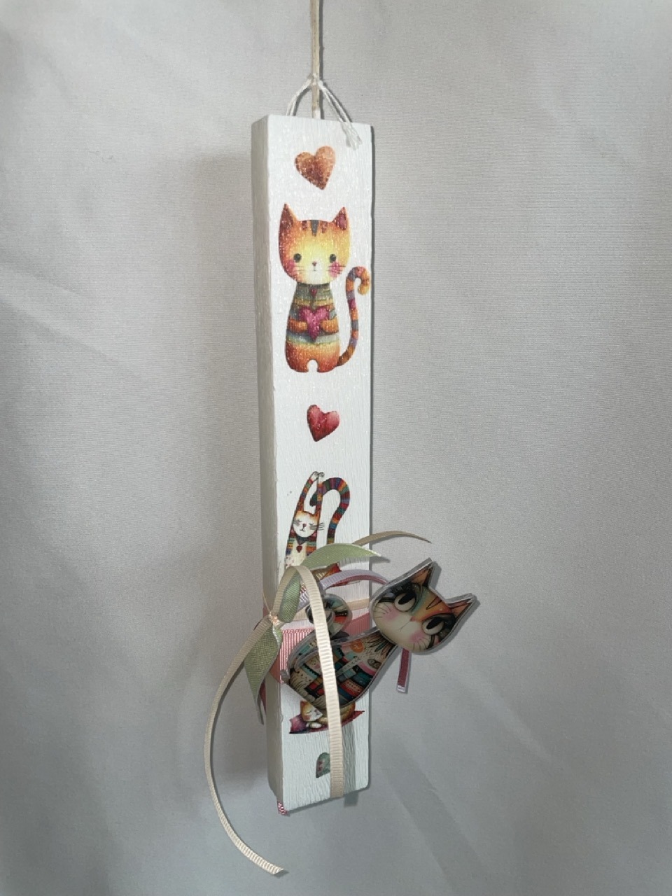 Πλακέ λευκή λαμπάδα με γατούλες και μαγνήτη γατούλα Β