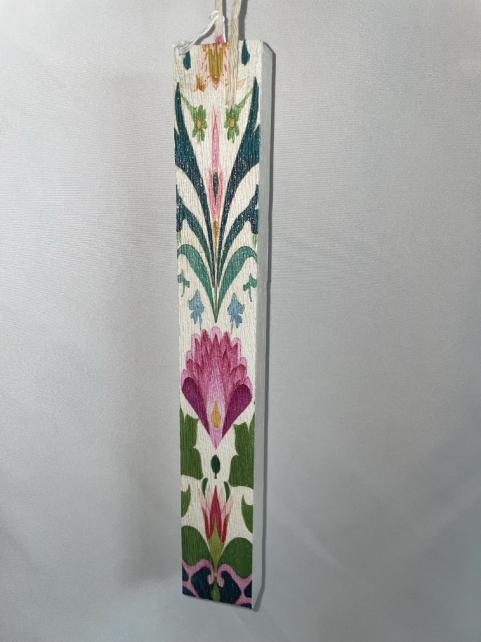 Πλακέ λευκή λαμπάδα με λουλούδι φούξια με μέντα και πράσινο