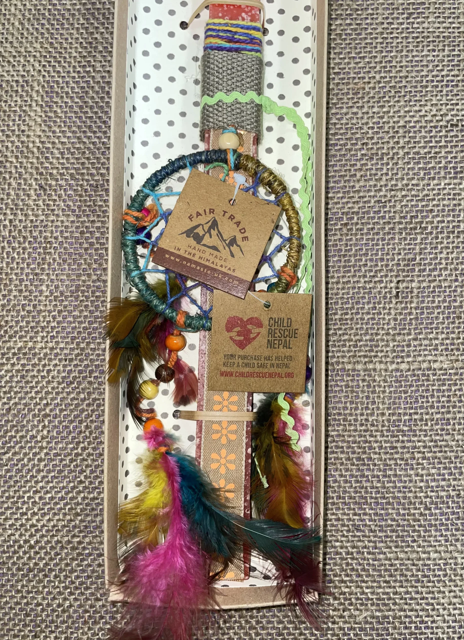 Ετικέτα: Πορτοκαλί πλακέ πιστιλωτή λαμπάδα με κρεμαστή πολύχρωμη ονειροπαγίδα