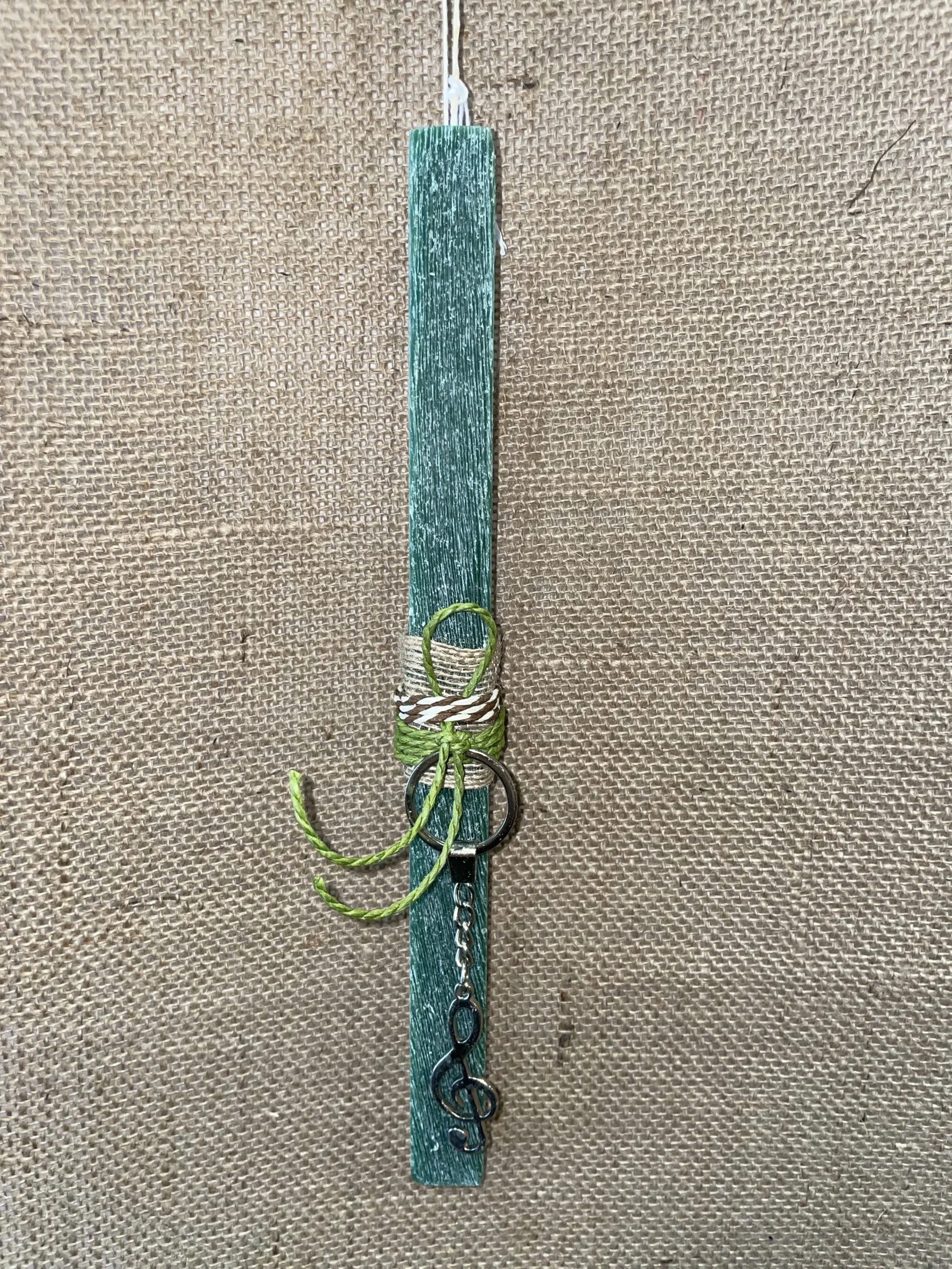 Πράσινη τετράγωνη αρωματική λαμπάδα με μεταλλικό μπρελόκ κλειδί του Σολ