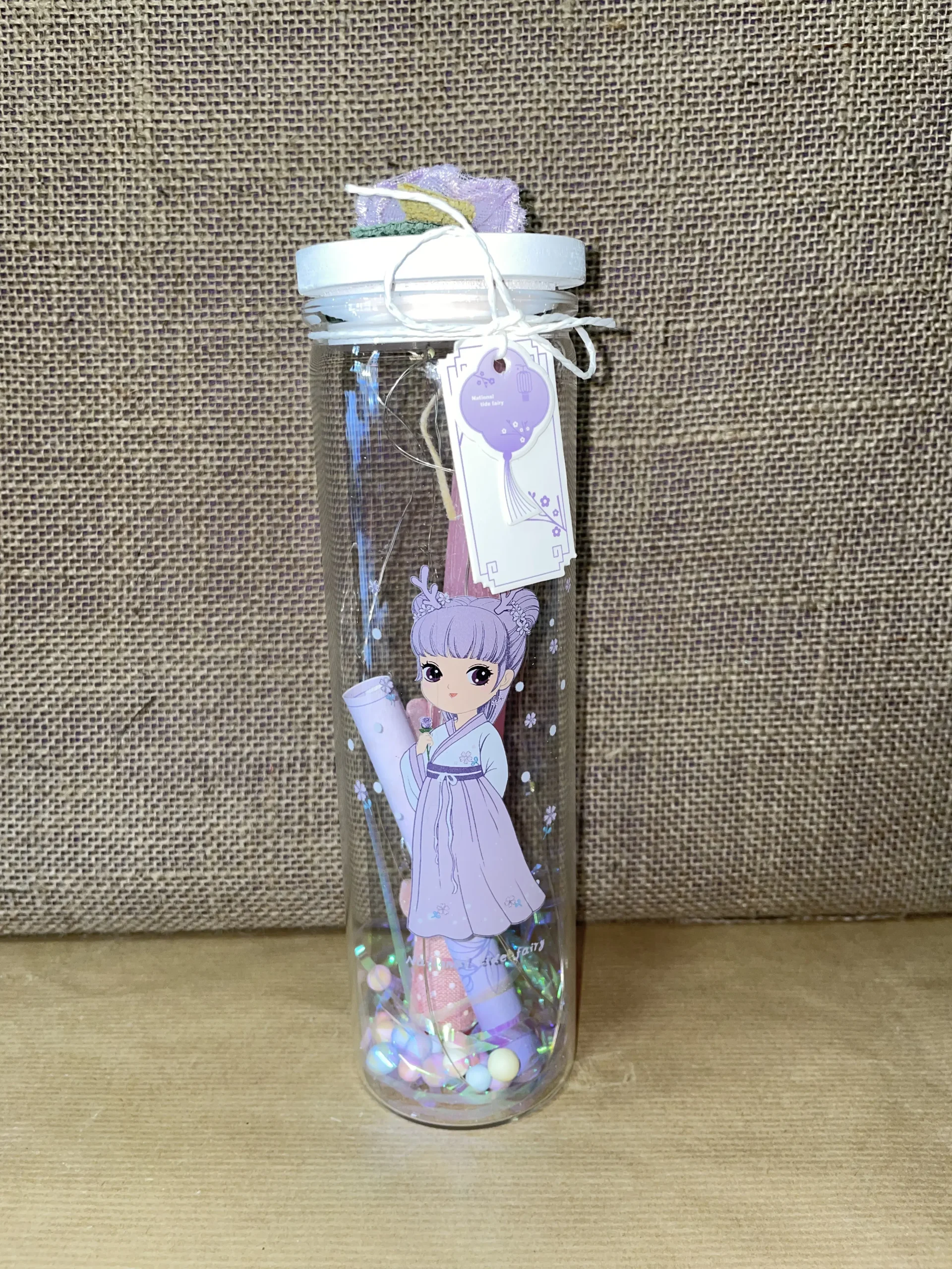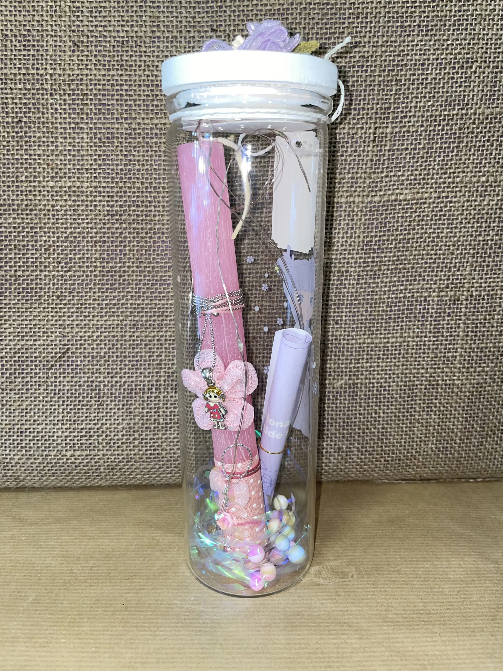 Ετικέτα: Ροζ λαμπαδάκι με κολιέ χρυσό μέσα σε στρογγυλό γυάλινο μπουκαλάκι με γαλάζιο Anime με φωτάκια