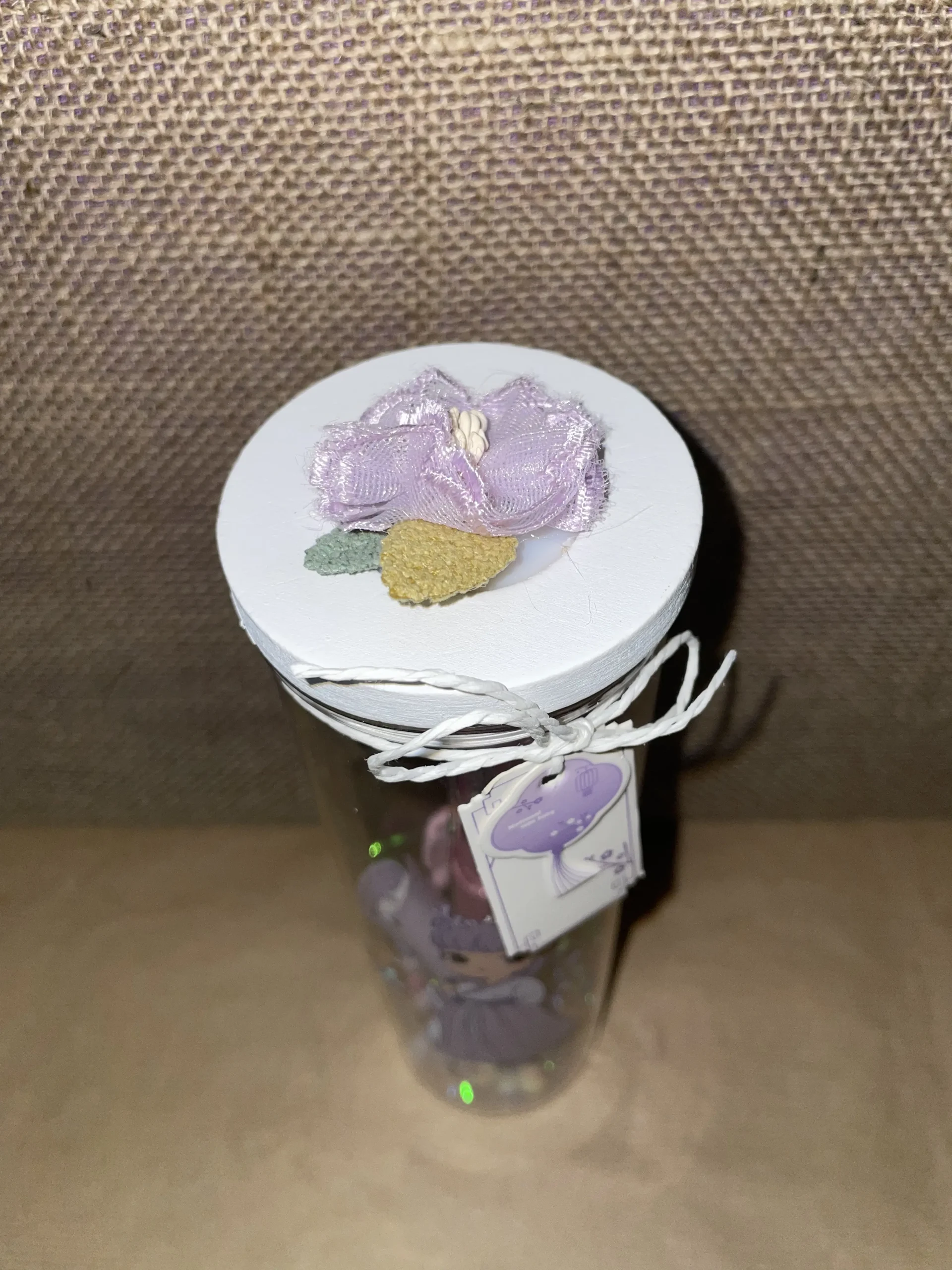 Ροζ λαμπαδάκι με κολιέ χρυσό μέσα σε στρογγυλό γυάλινο μπουκαλάκι με μωβ Anime με φωτάκια