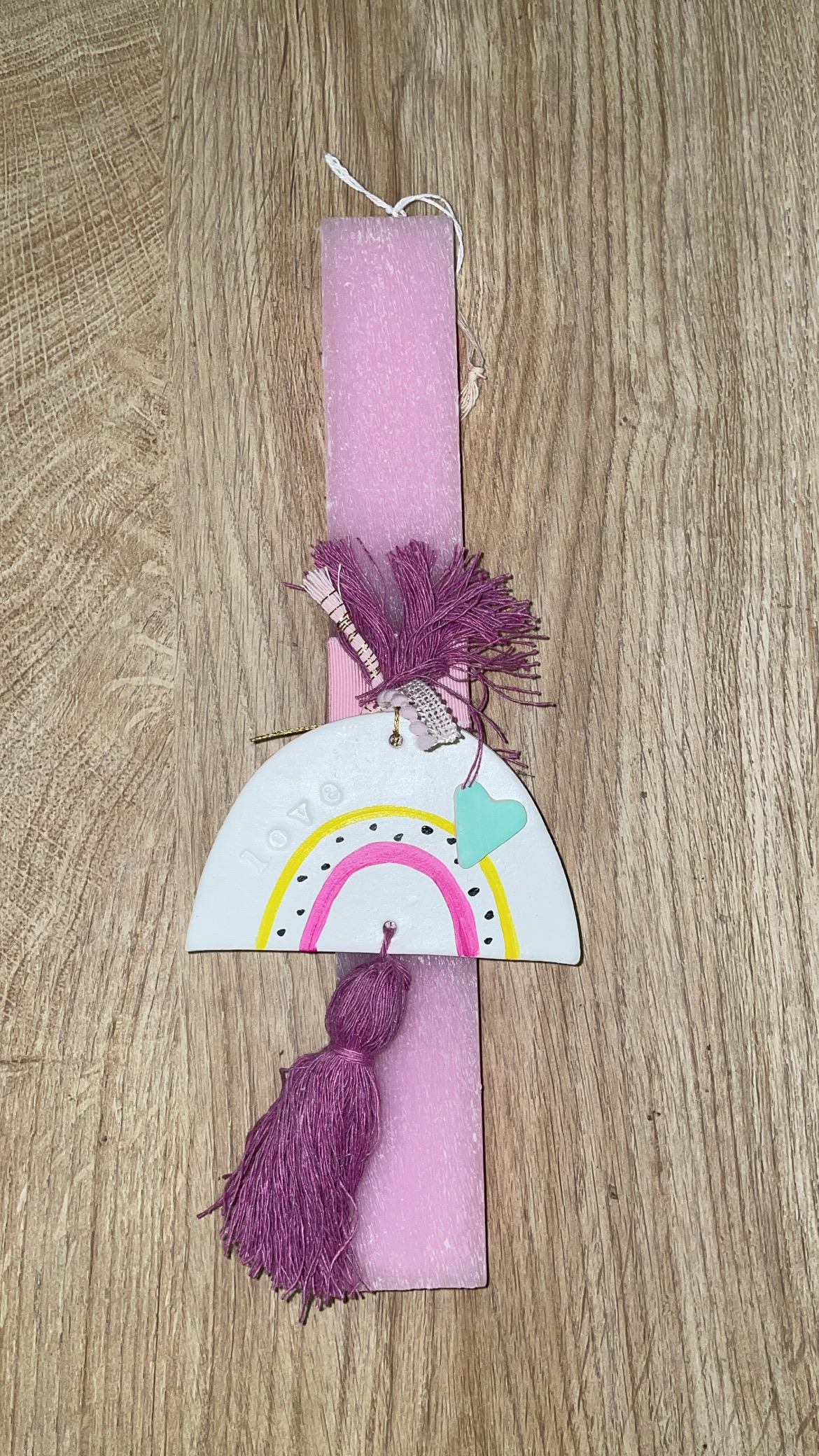 Ροζ πλακέ λαμπάδα με κεραμικό ουράνιο τόξο