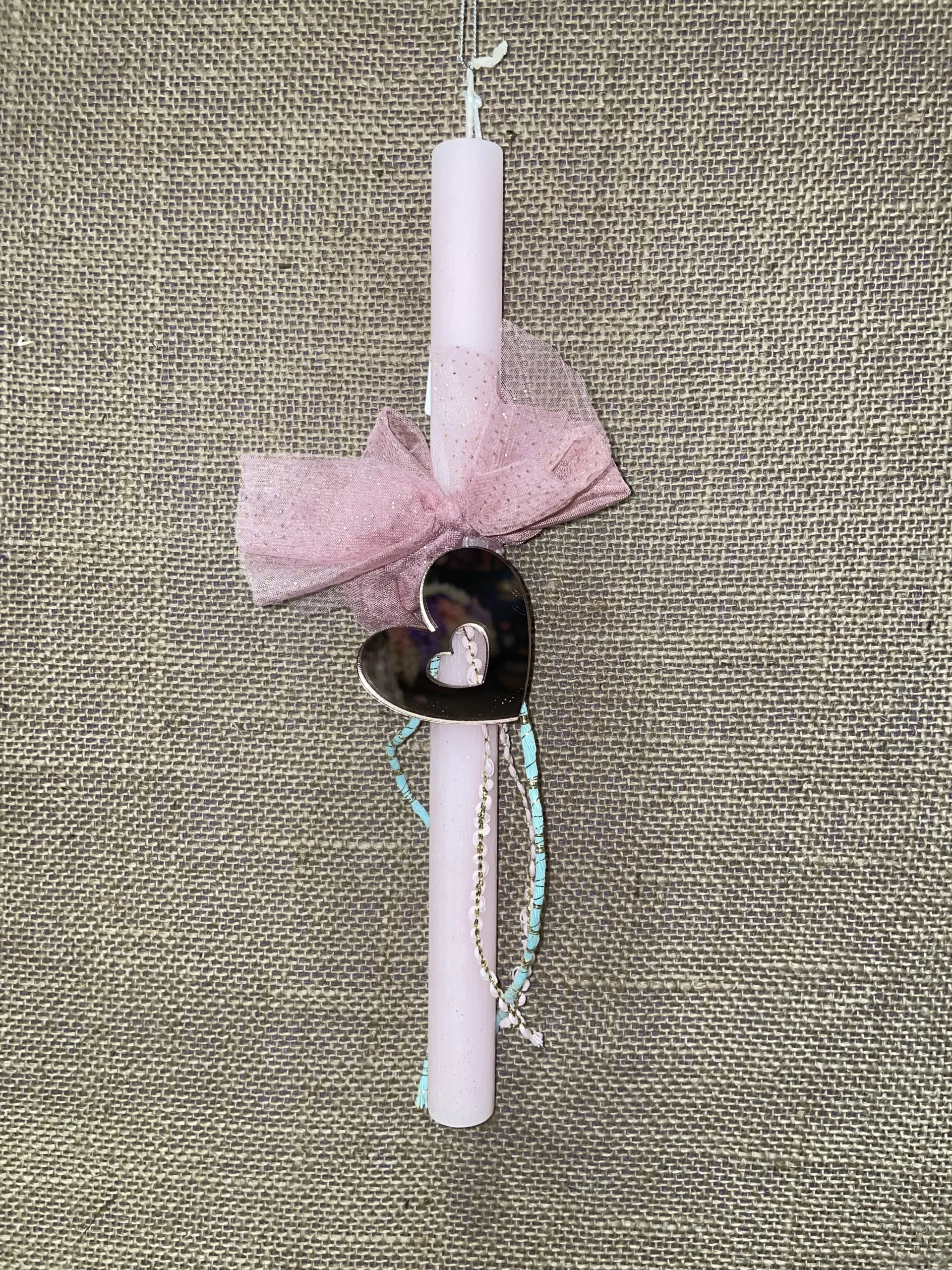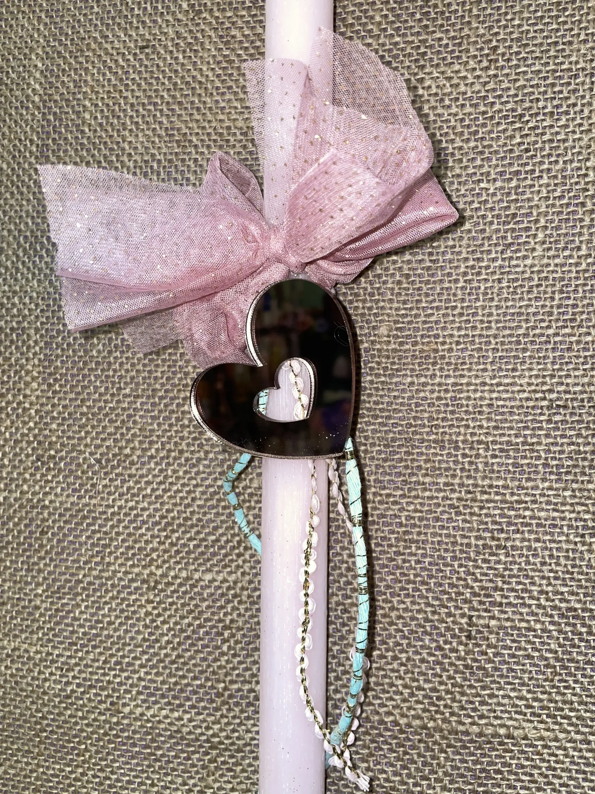 Ροζ στρογγυλή αρωματική λαμπάδα με καρδιά από plexiglass