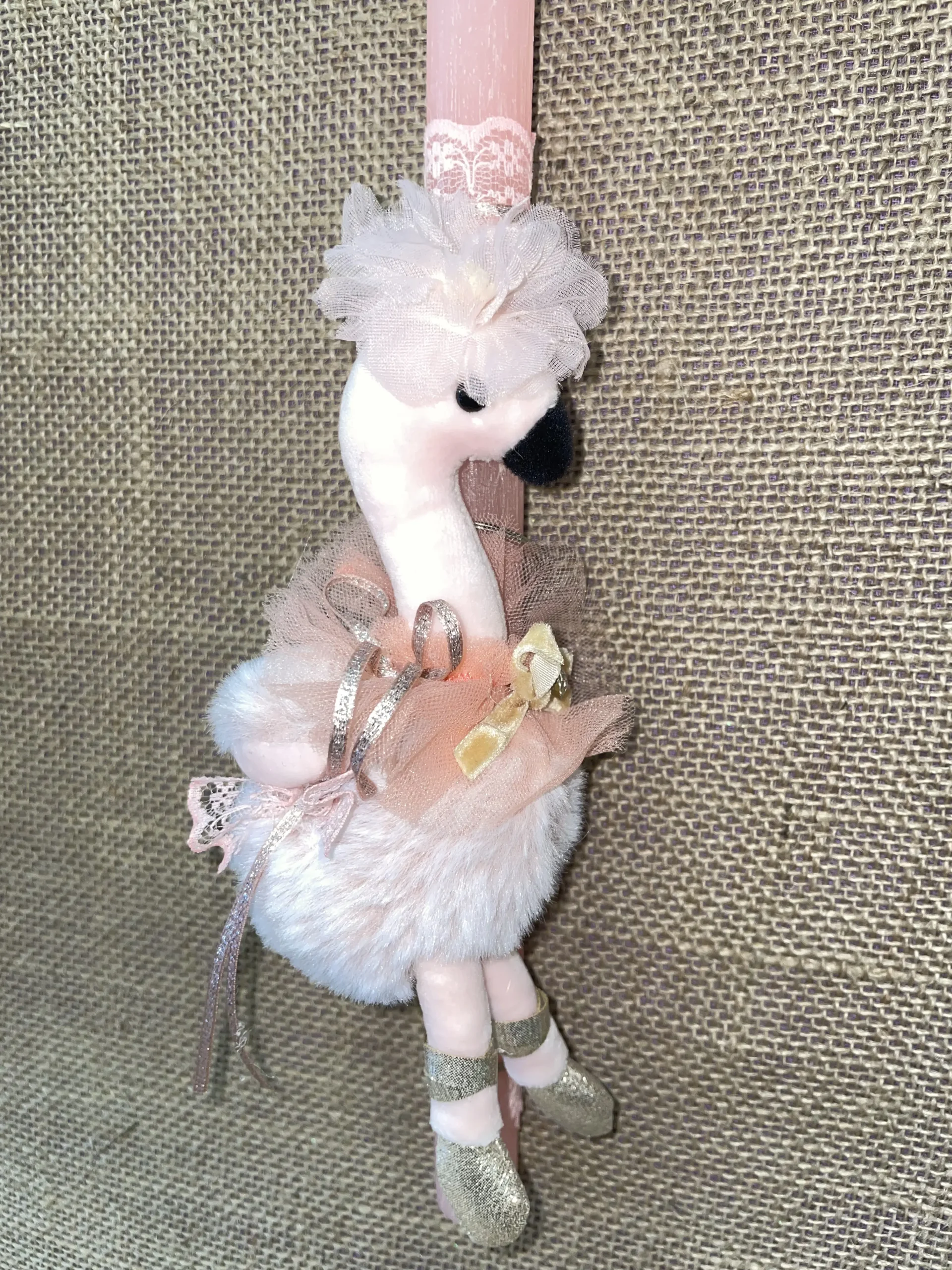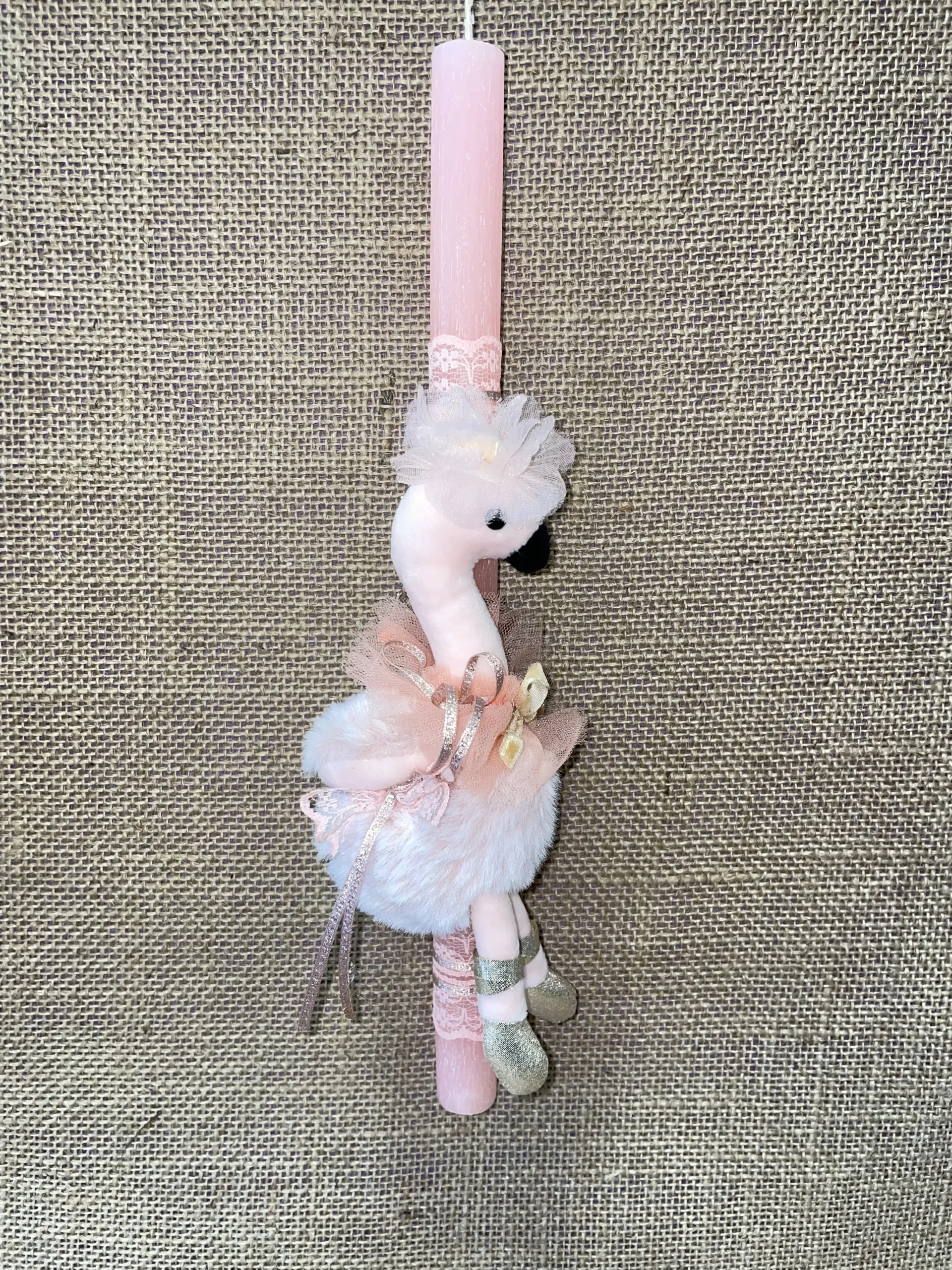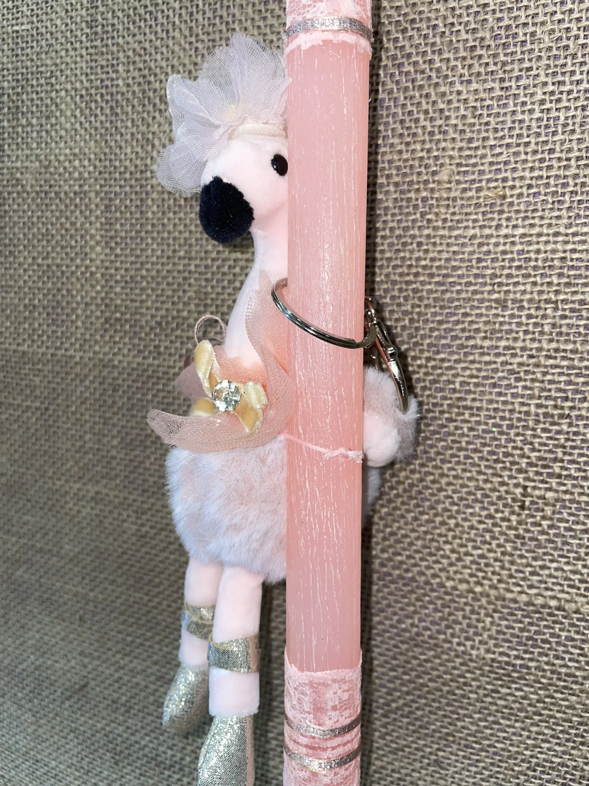 Ροζ στρογγυλή λαμπάδα με μπρελόκ φλαμίνγκο ροζ