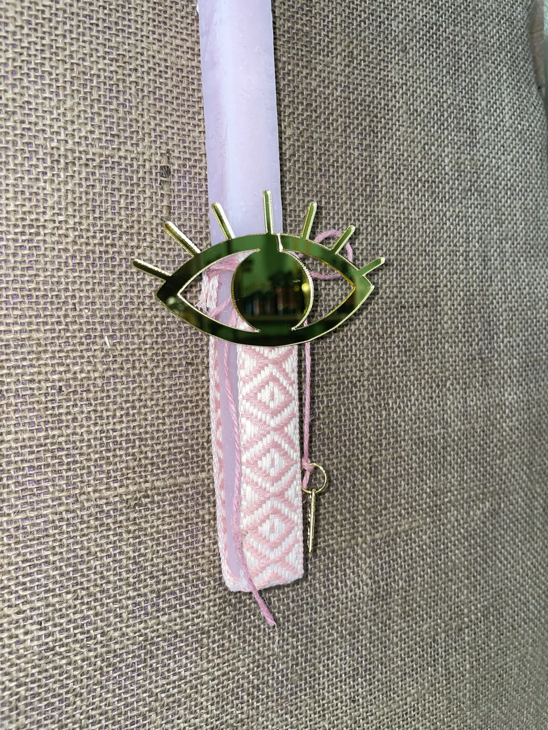 Ροζ τετράγωνη αρωματική λαμπάδα με plexiglass ματάκι