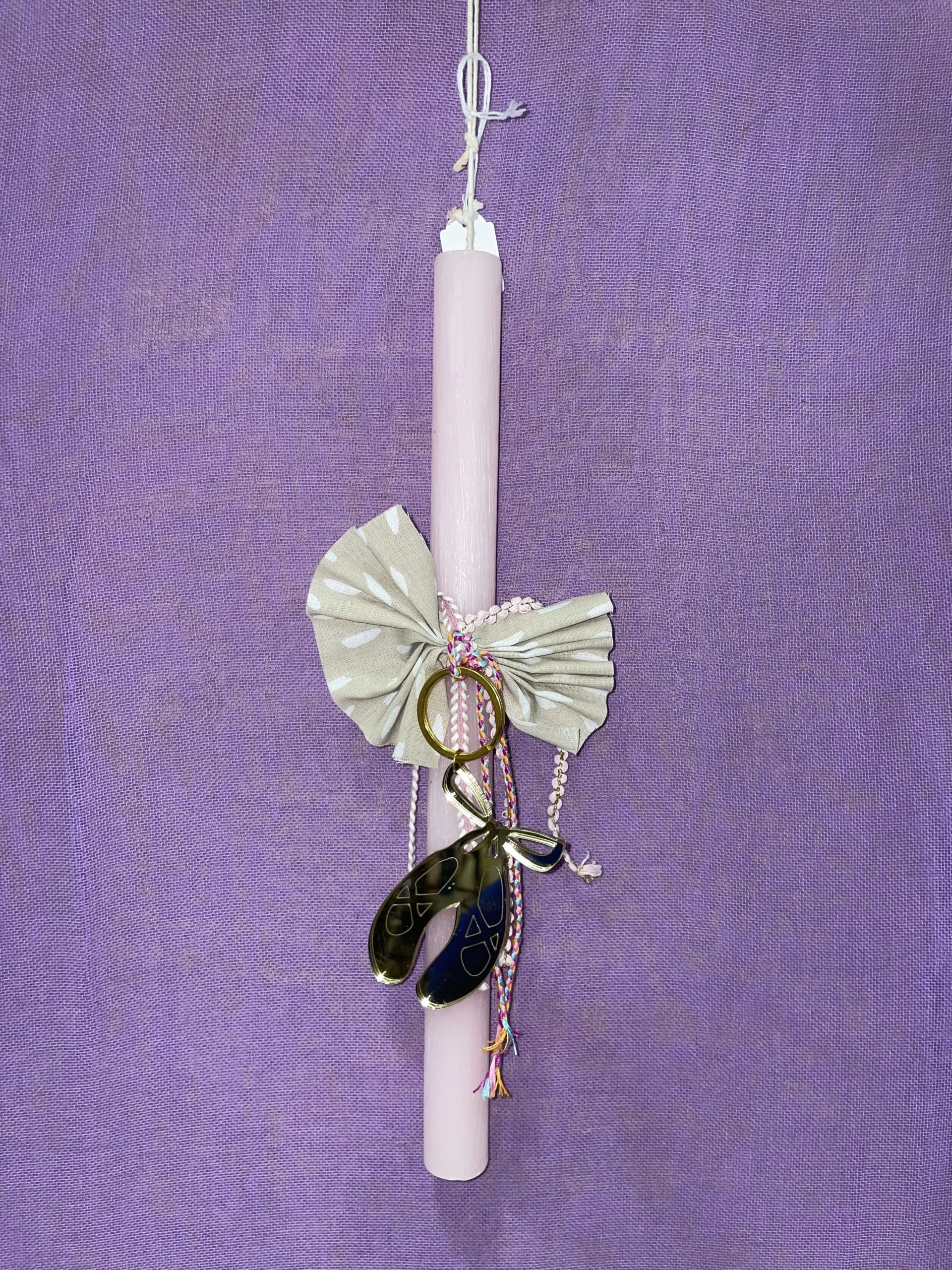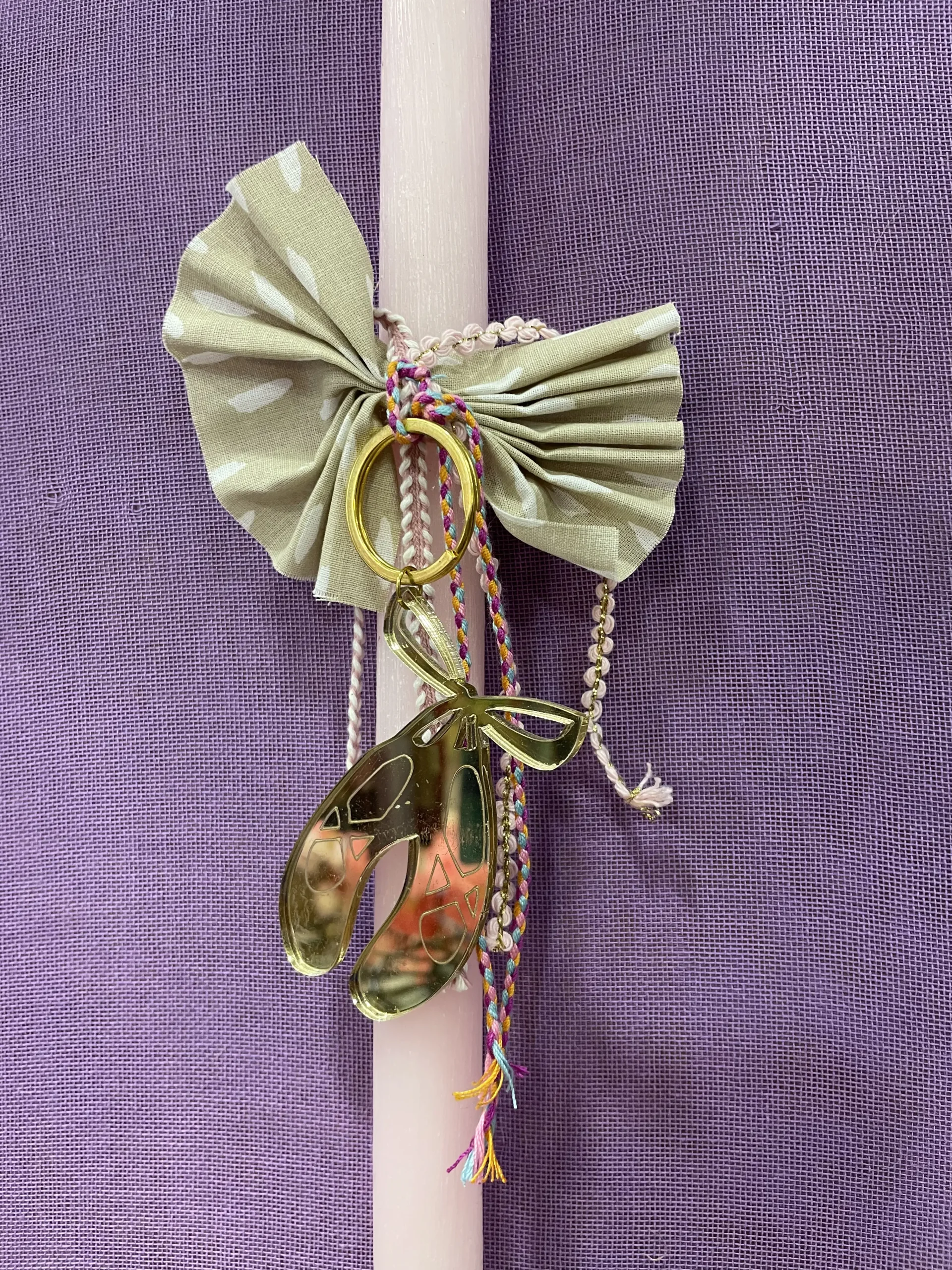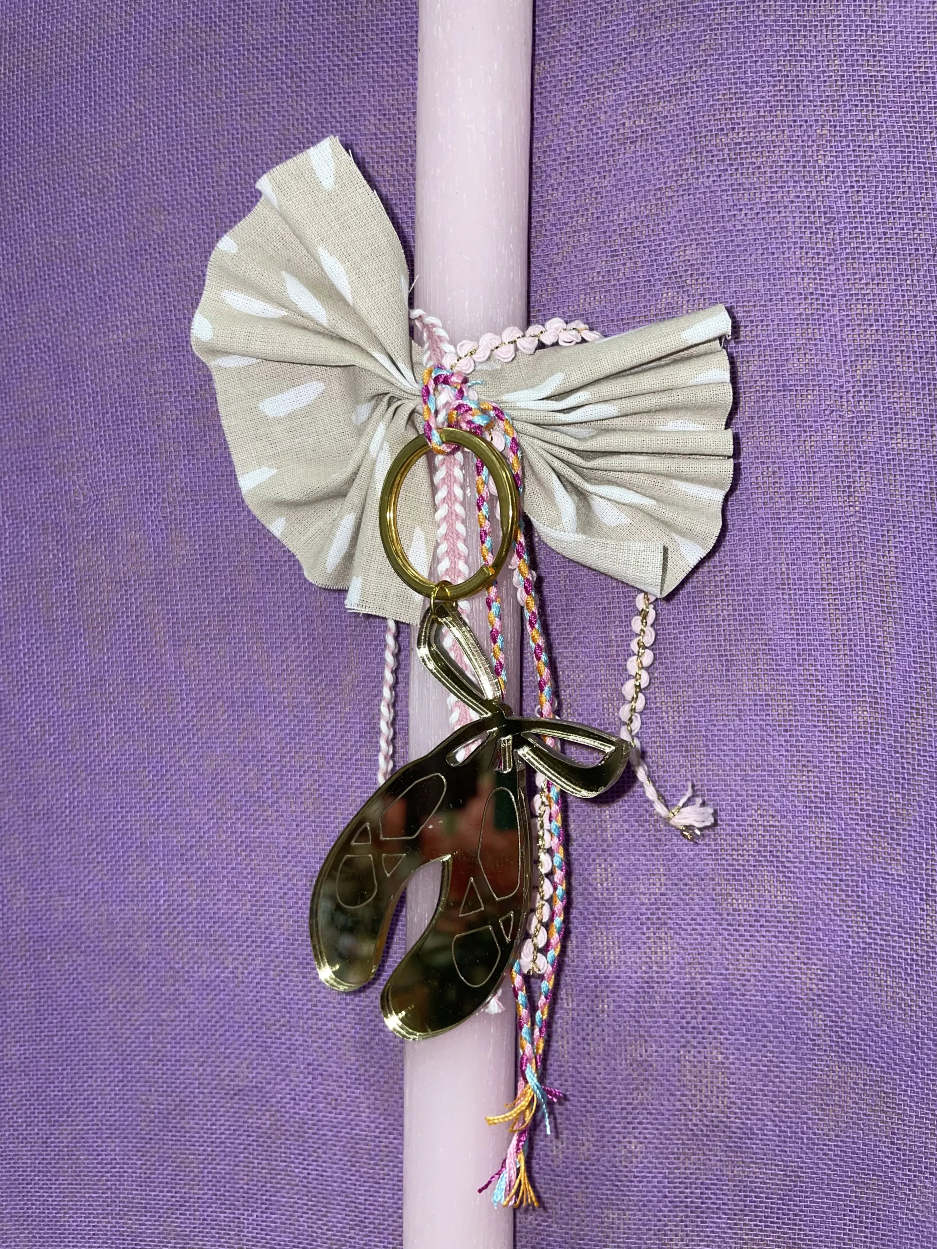 Ετικέτα: Στρογγυλή λαμπάδα με χρυσό μπρελόκ πουέντ από plexiglass