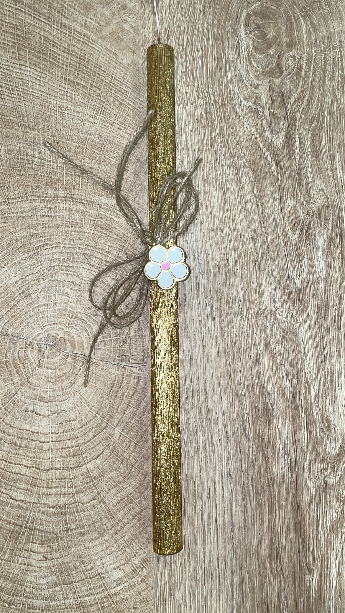 Στρογγυλή χρυσή λαμπάδα με μεταλλικό λευκό λουλούδι