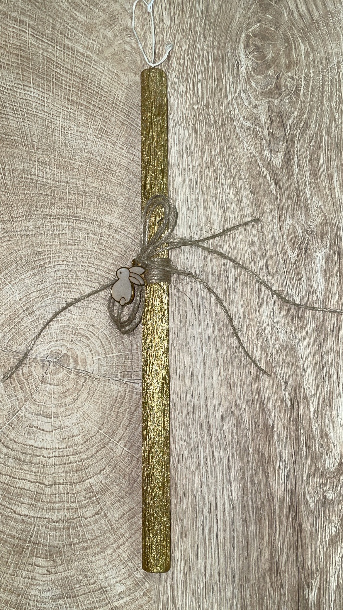 Tag: Στρογγυλή χρυσή λαμπάδα με μεταλλικό λευκό κουνέλι