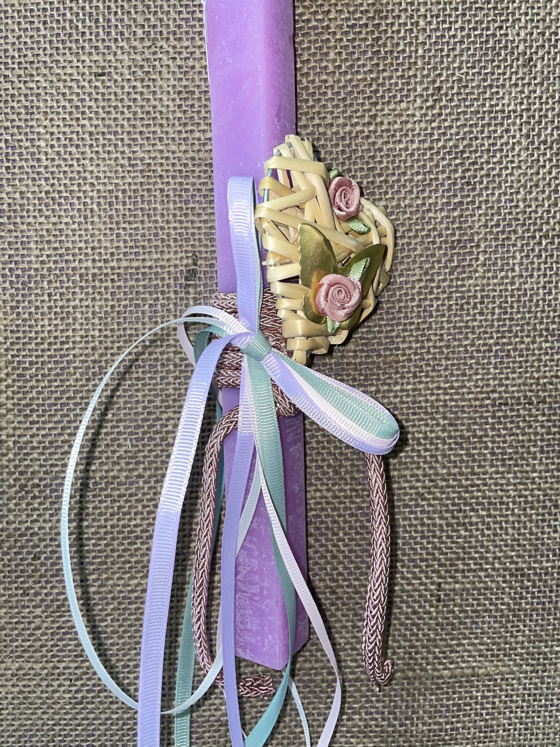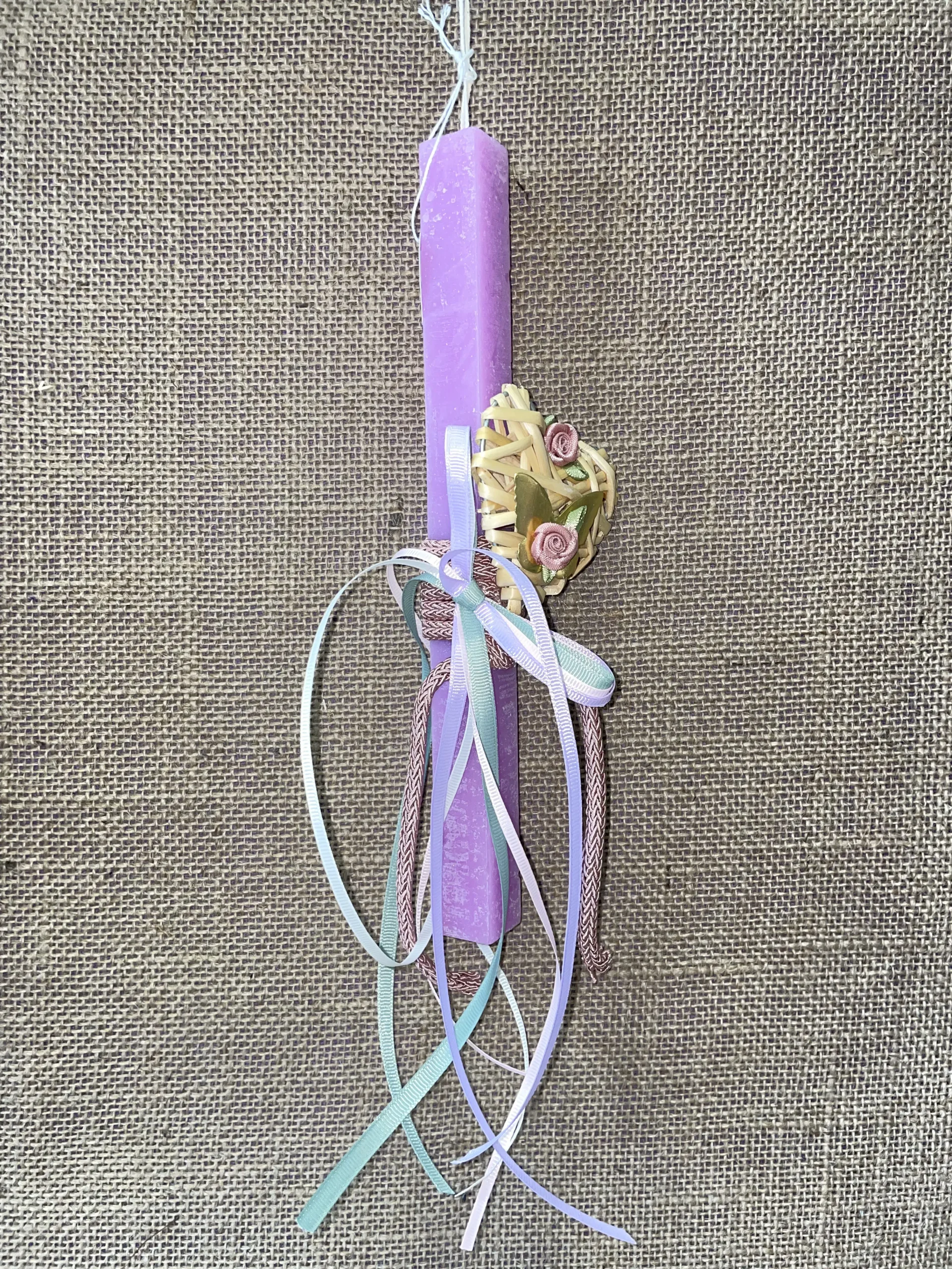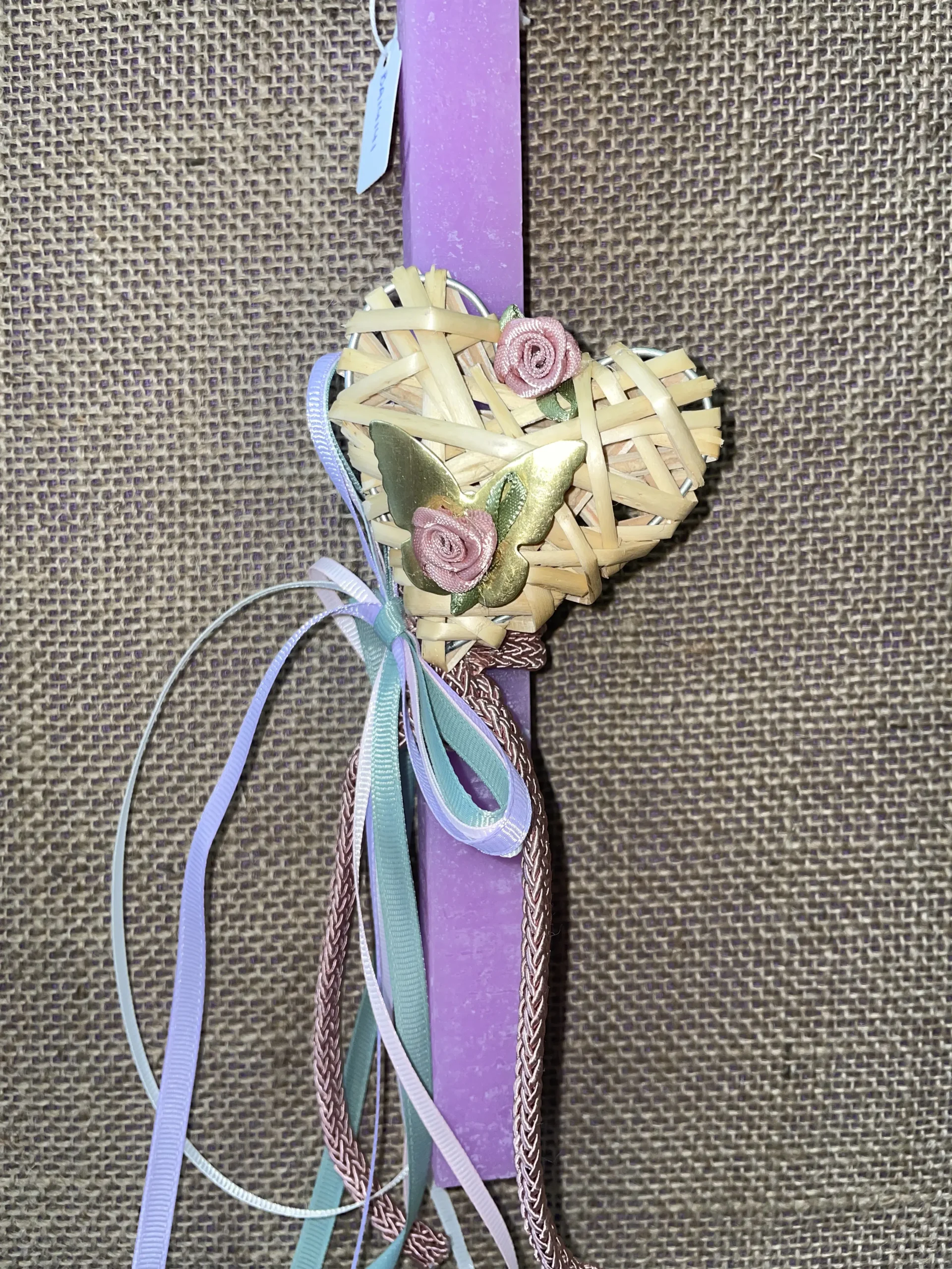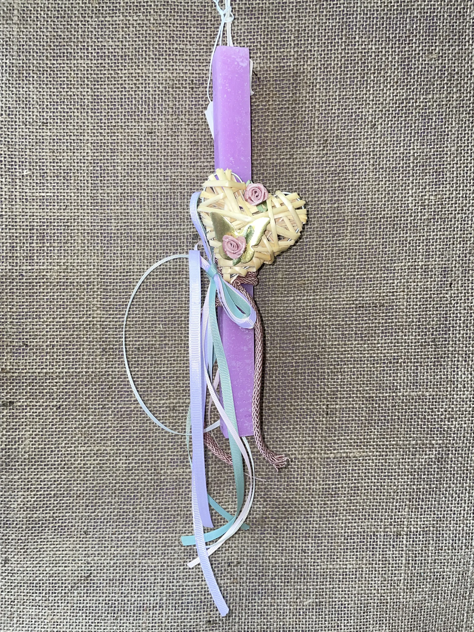 Φούξια τετράγωνη αρωματική λαμπάδα με πλεκτή μπαμπού καρδιά