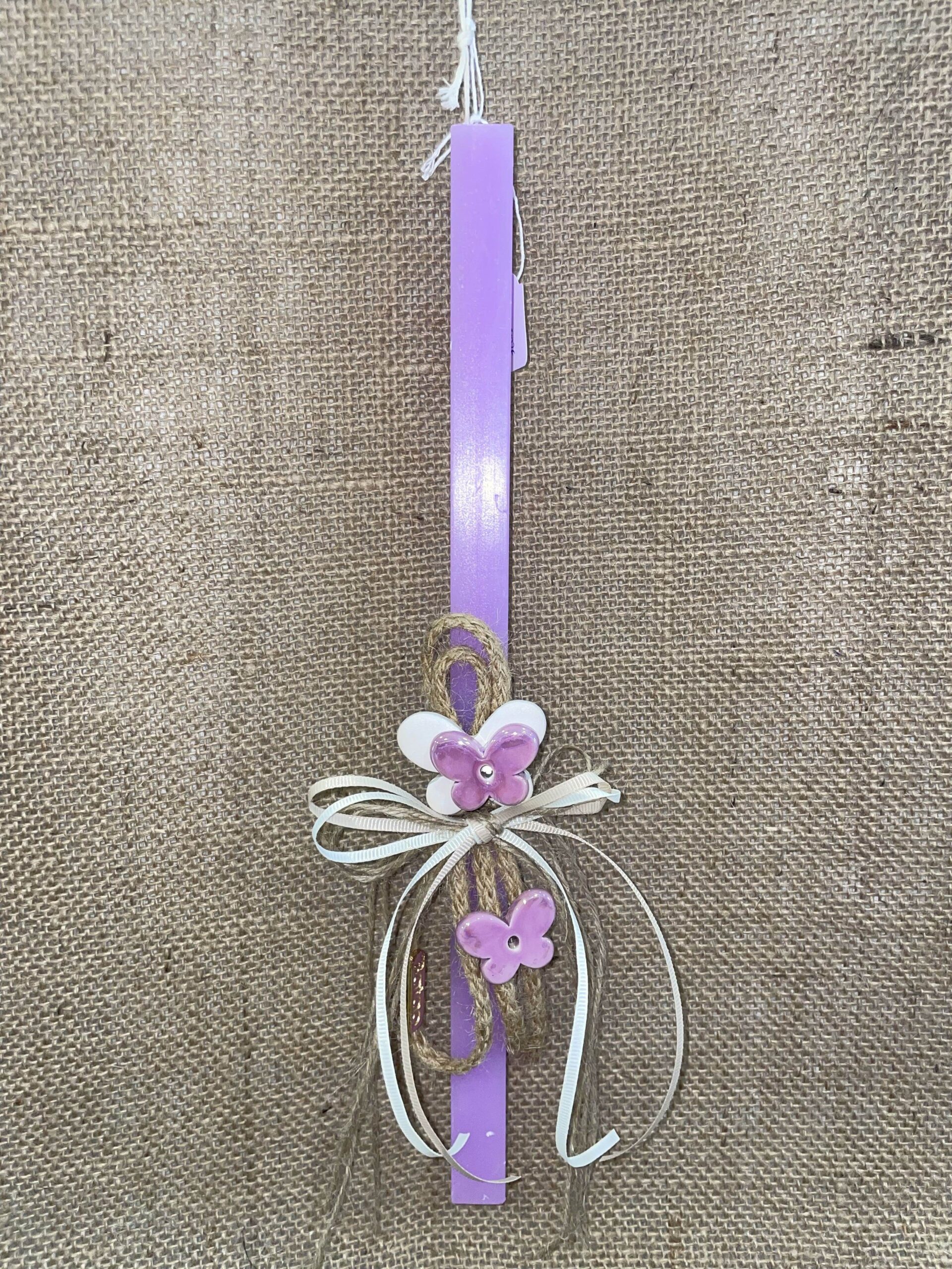 Ετικέτα: Φούξια τετράγωνη λαμπάδα με κεραμικές πεταλουδίτσες και σχοινί
