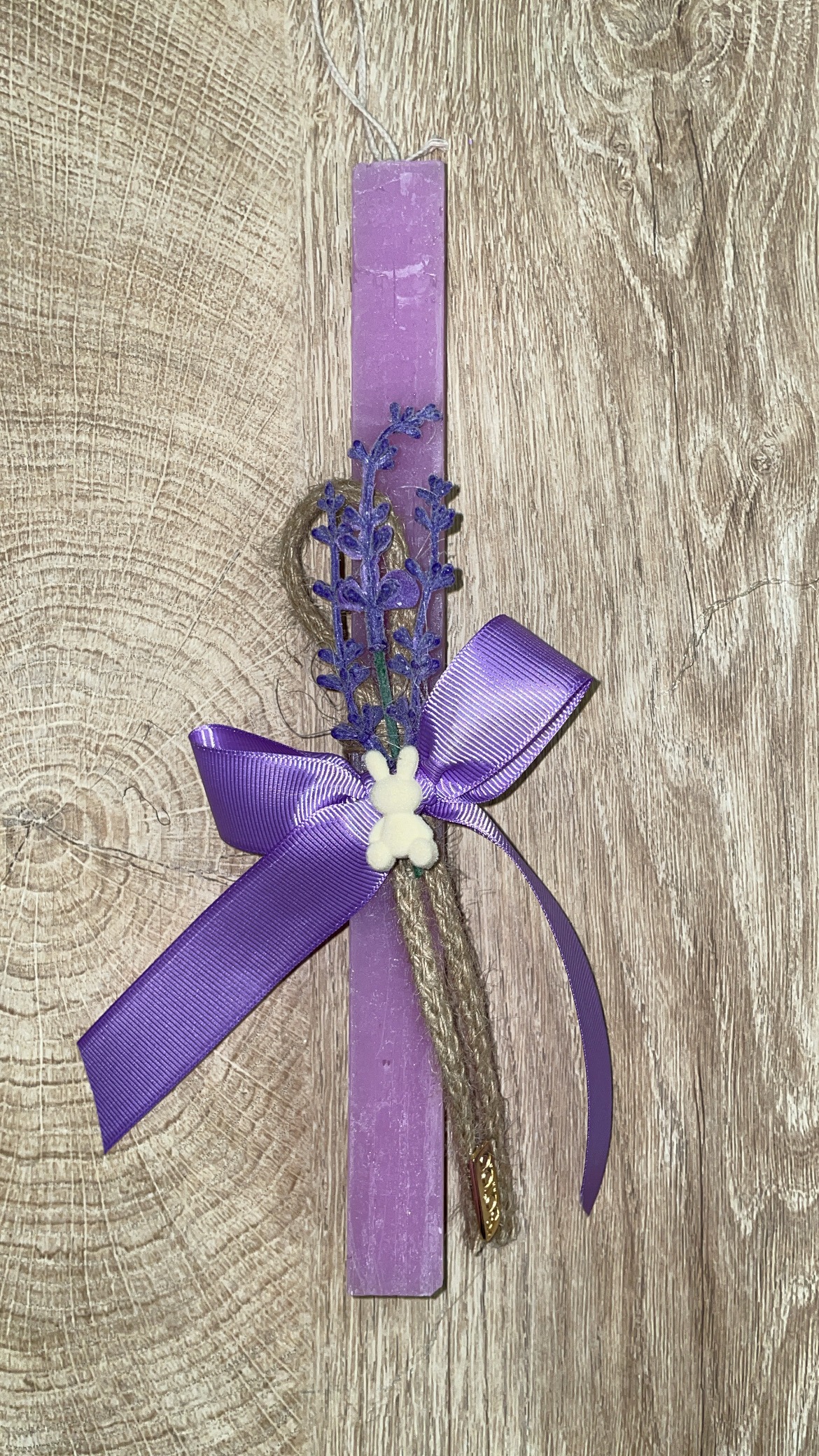Φούξια τετράγωνη λαμπάδα με λεβάντα και μικρό κουνελάκι