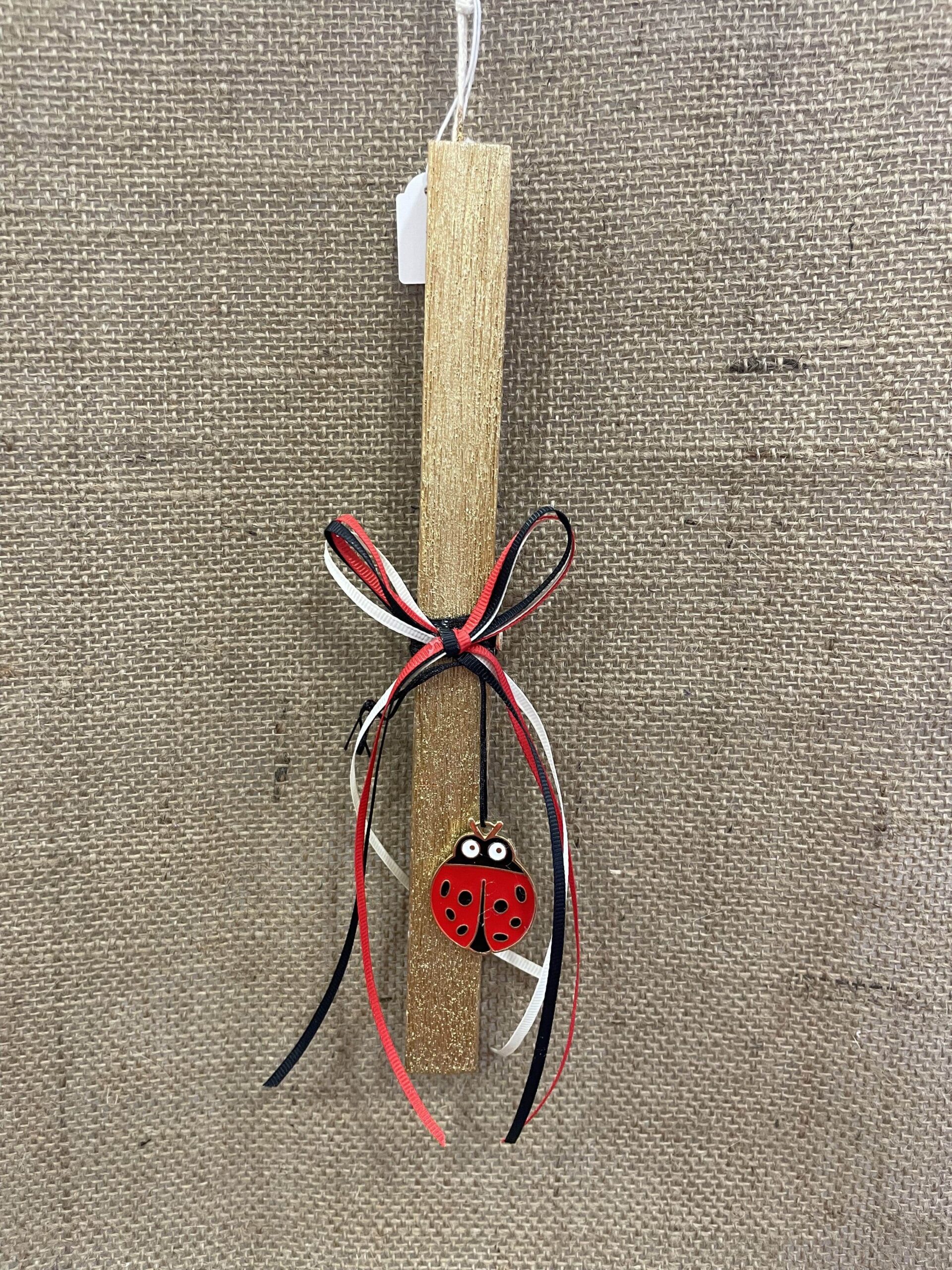 Ετικέτα: Χρυσή τετράγωνη λαμπάδα με διακοσμητική μεταλλική πασχαλίτσα