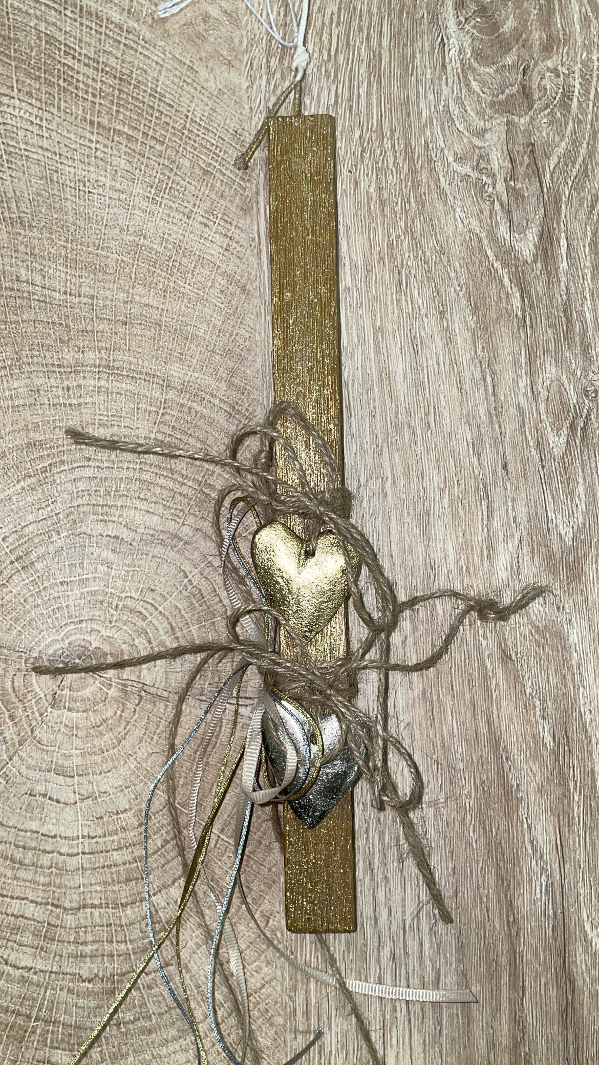 Χρυσή τετράγωνη λαμπάδα με μεταλλικές καρδιές
